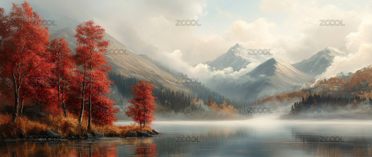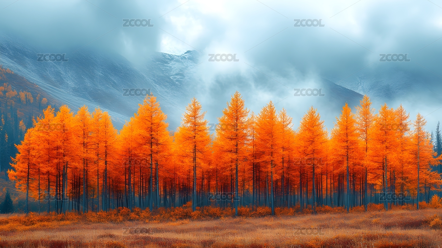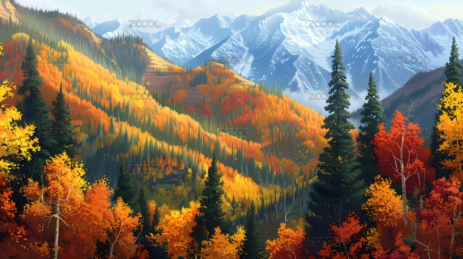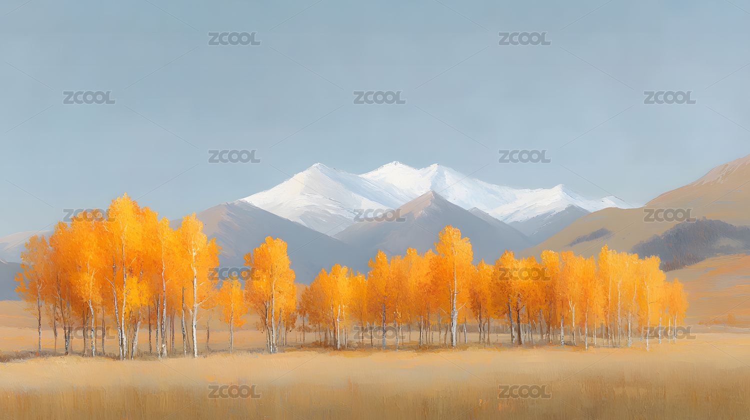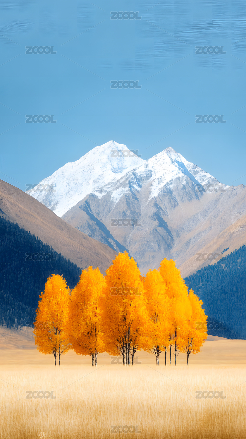 雪山,秋景,金黄,树木,草原,山脉,自然,风景,秋季,户外