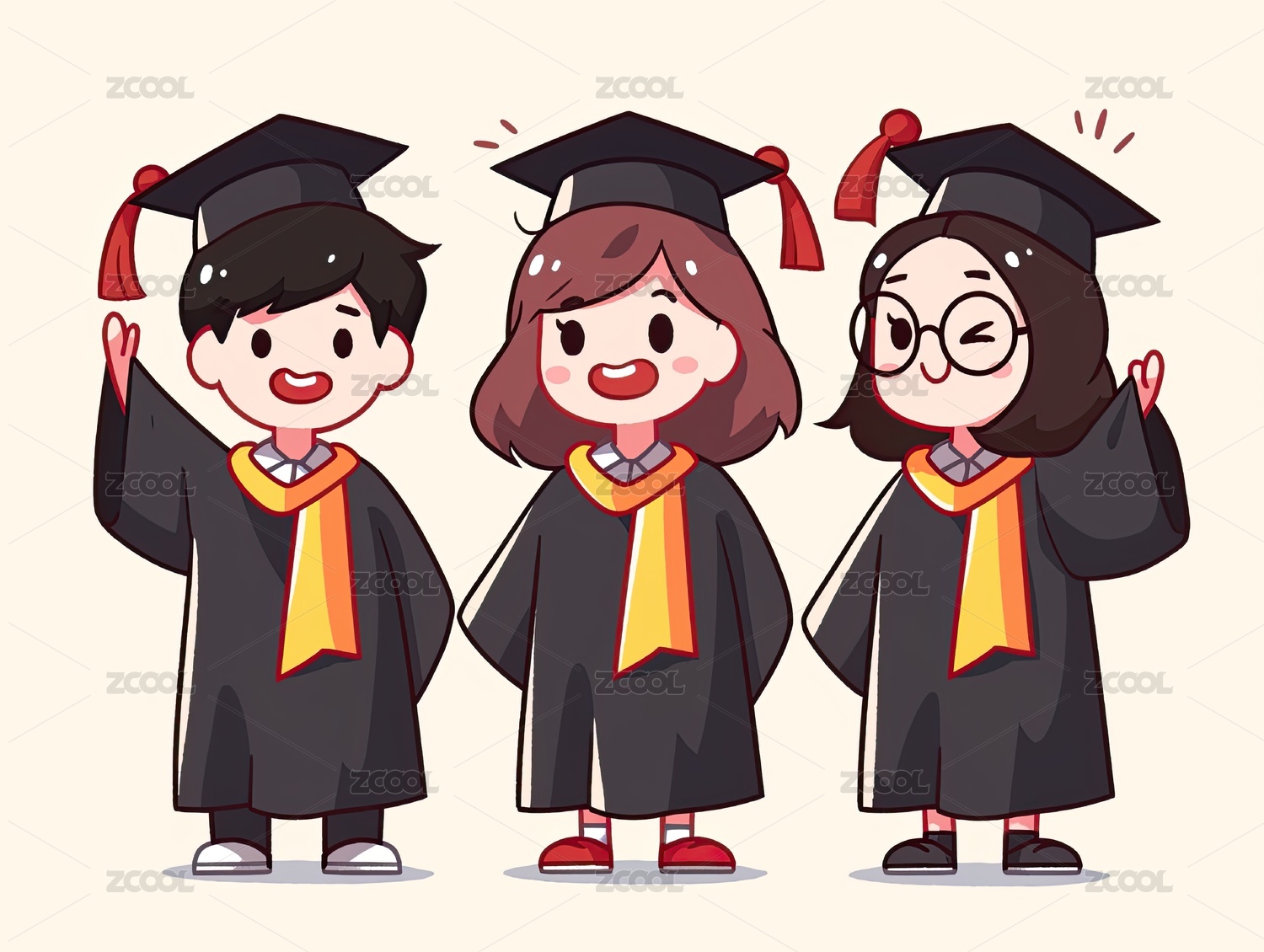 毕业季学士服人物插画素材
