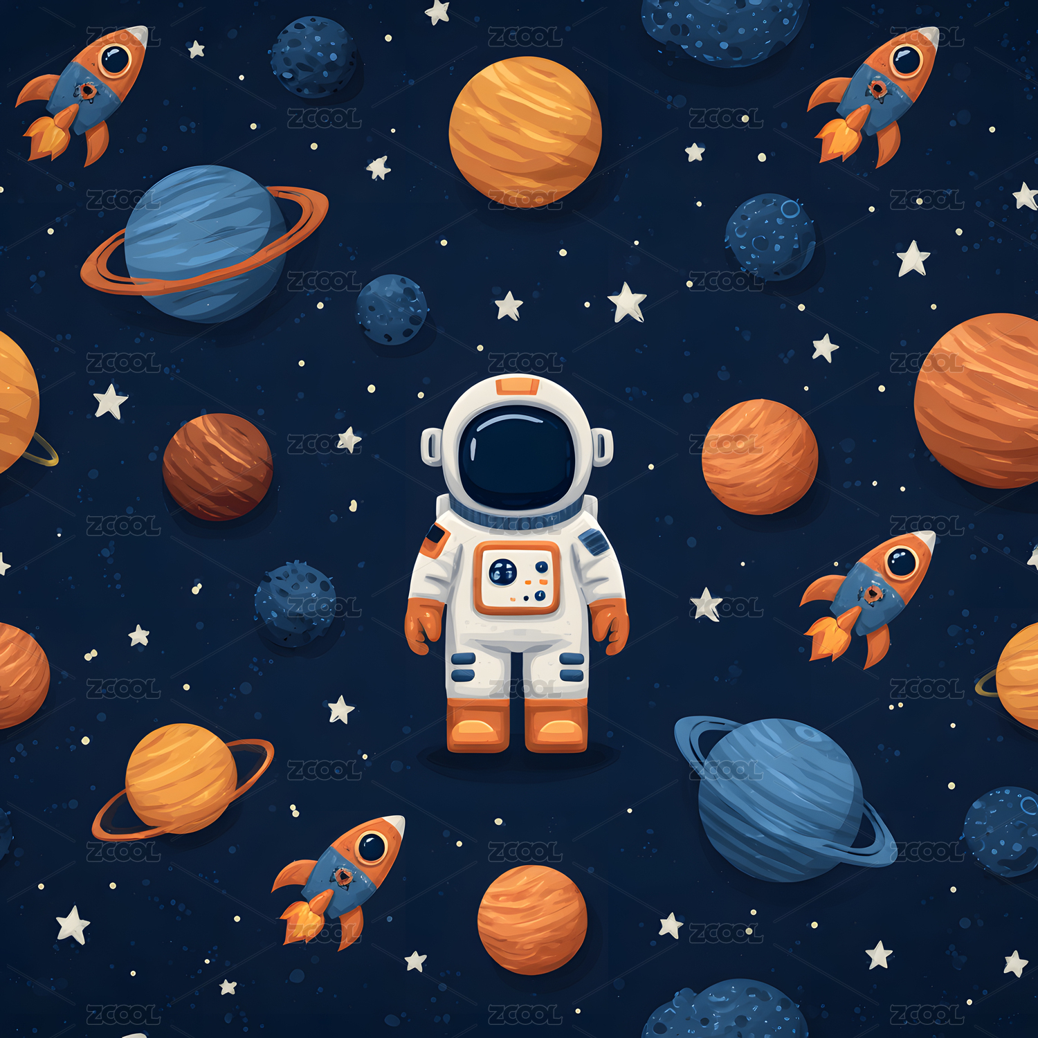 宇宙星空宇航员探险之旅,卡通风格梦幻场景