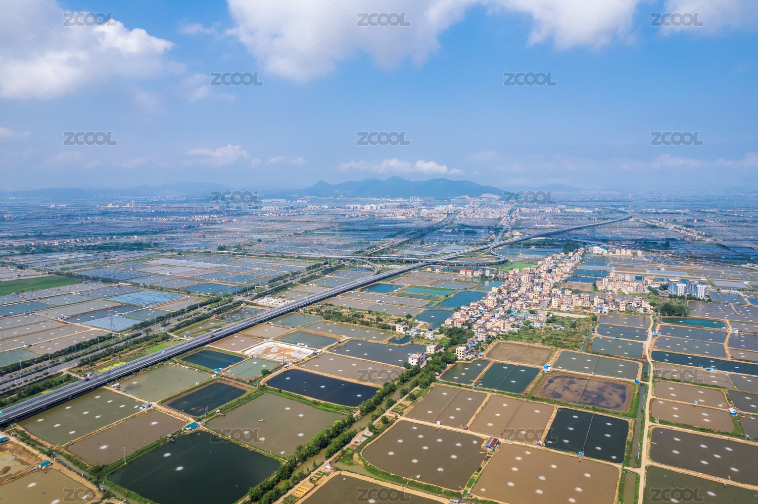珠海斗门养殖鱼塘蓝天白云航拍