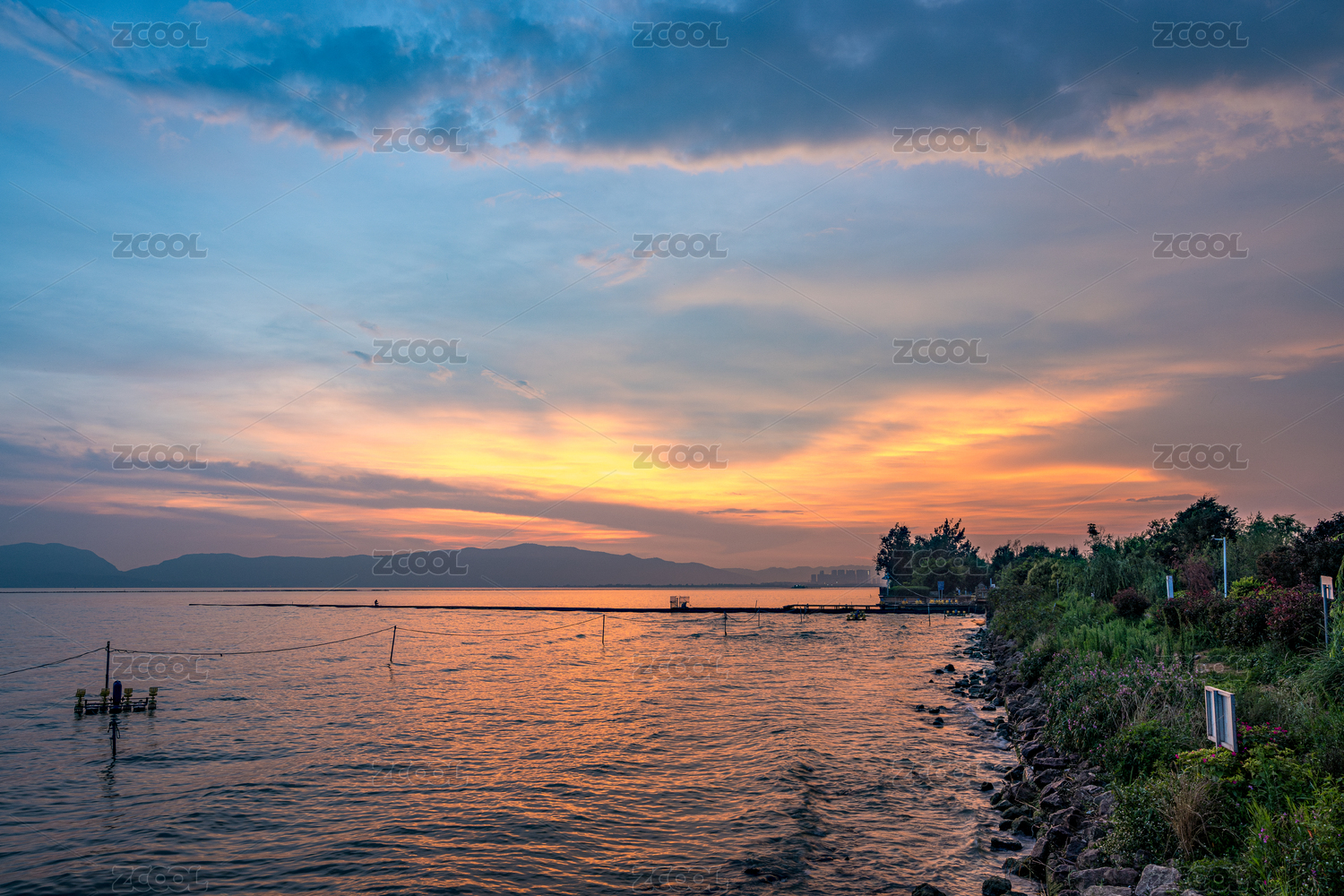 中国广东珠海金湾区三板村水乡美丽的晚霞