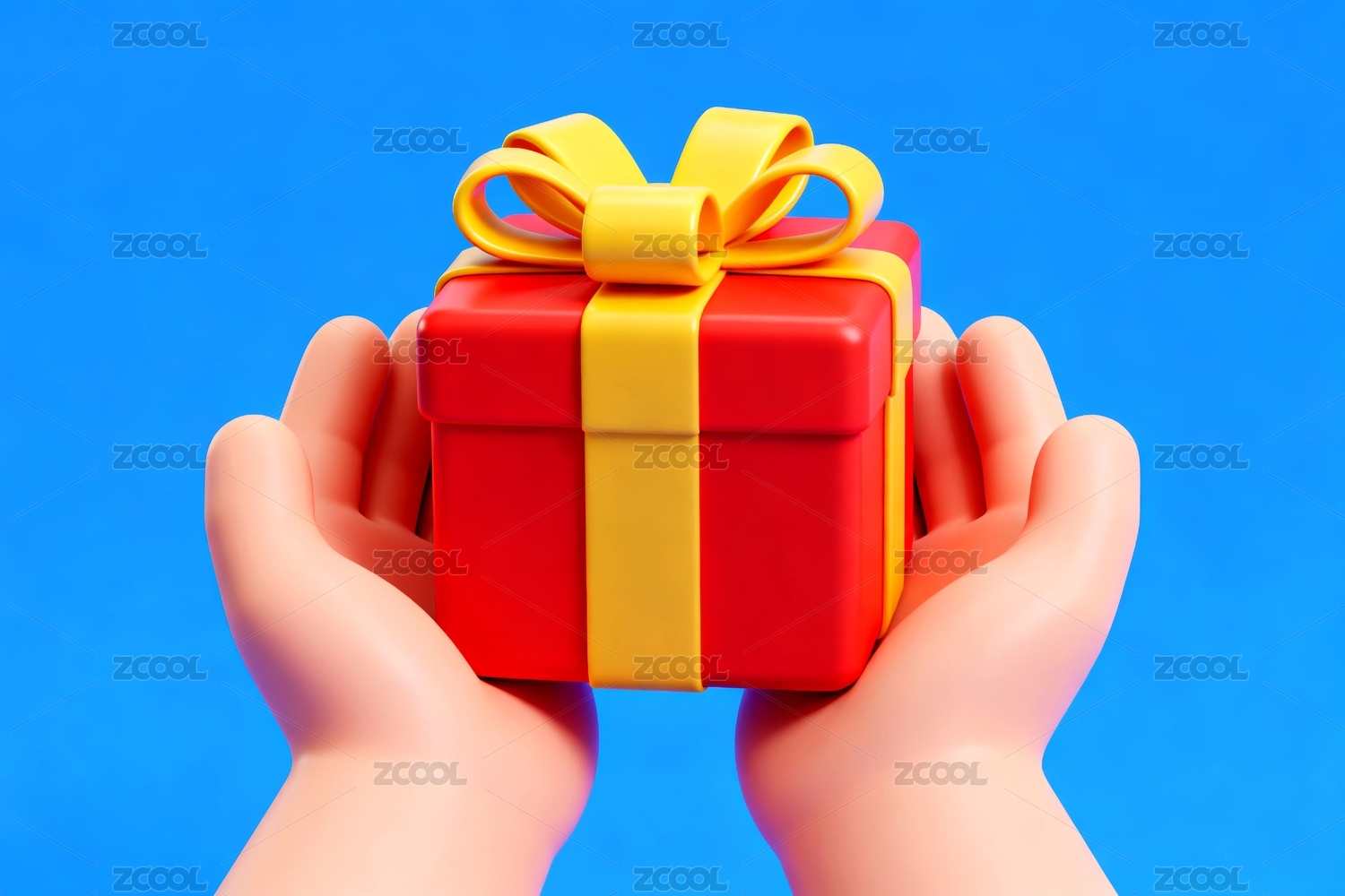 3D卡通拿着礼物盒的手