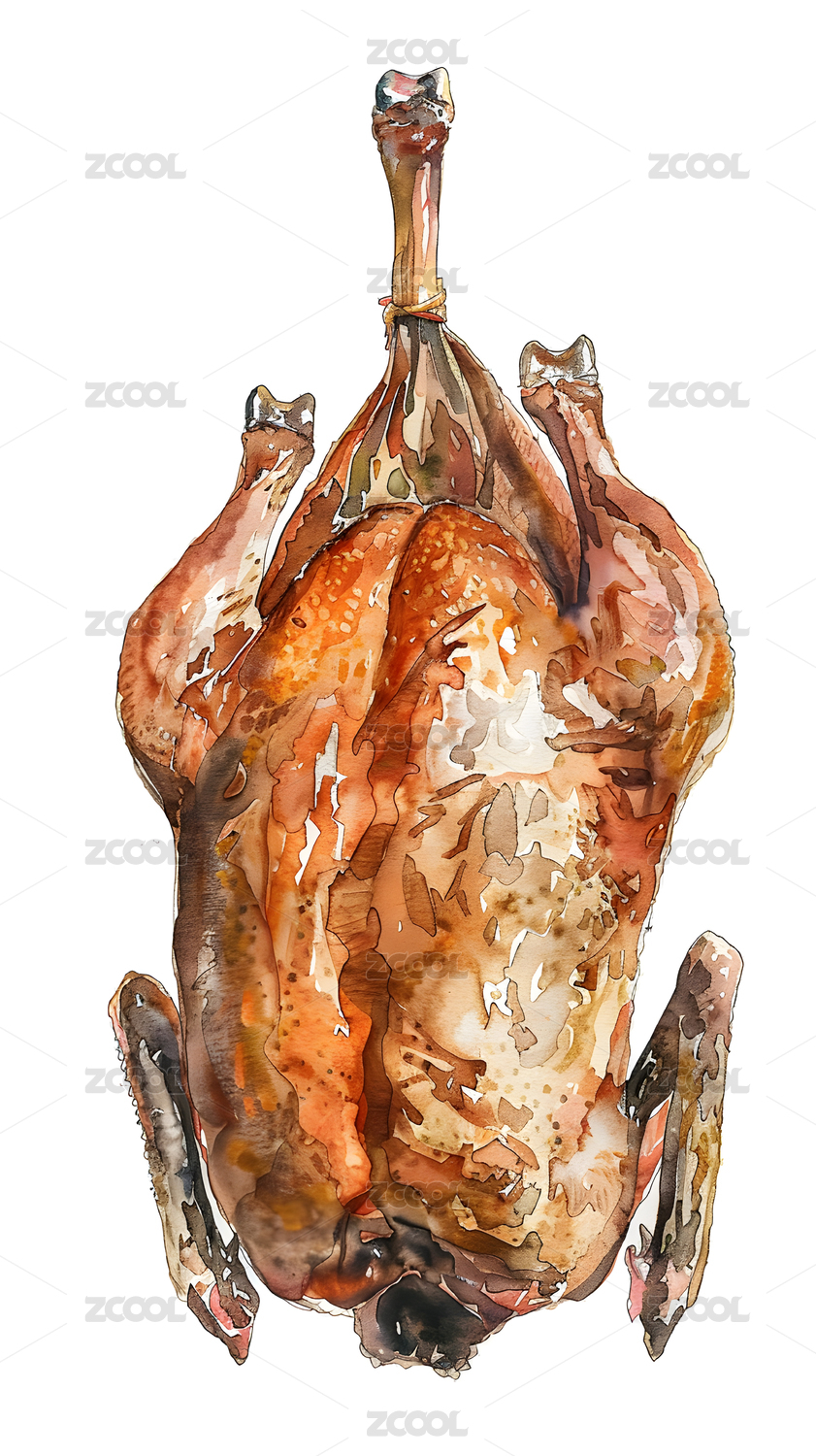 插画,食物,食品,白色背景,水彩,油画,美味,美食,烤鸡,烧鸡