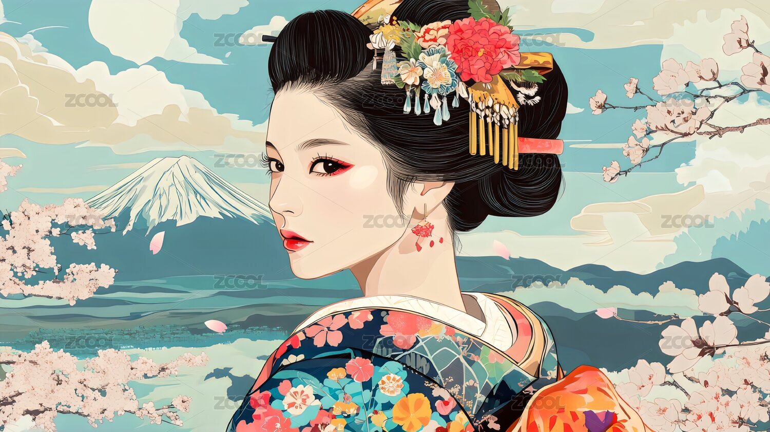花朵,绘画,艺术,意境,唯美,插画,传统,优雅,美丽,樱花