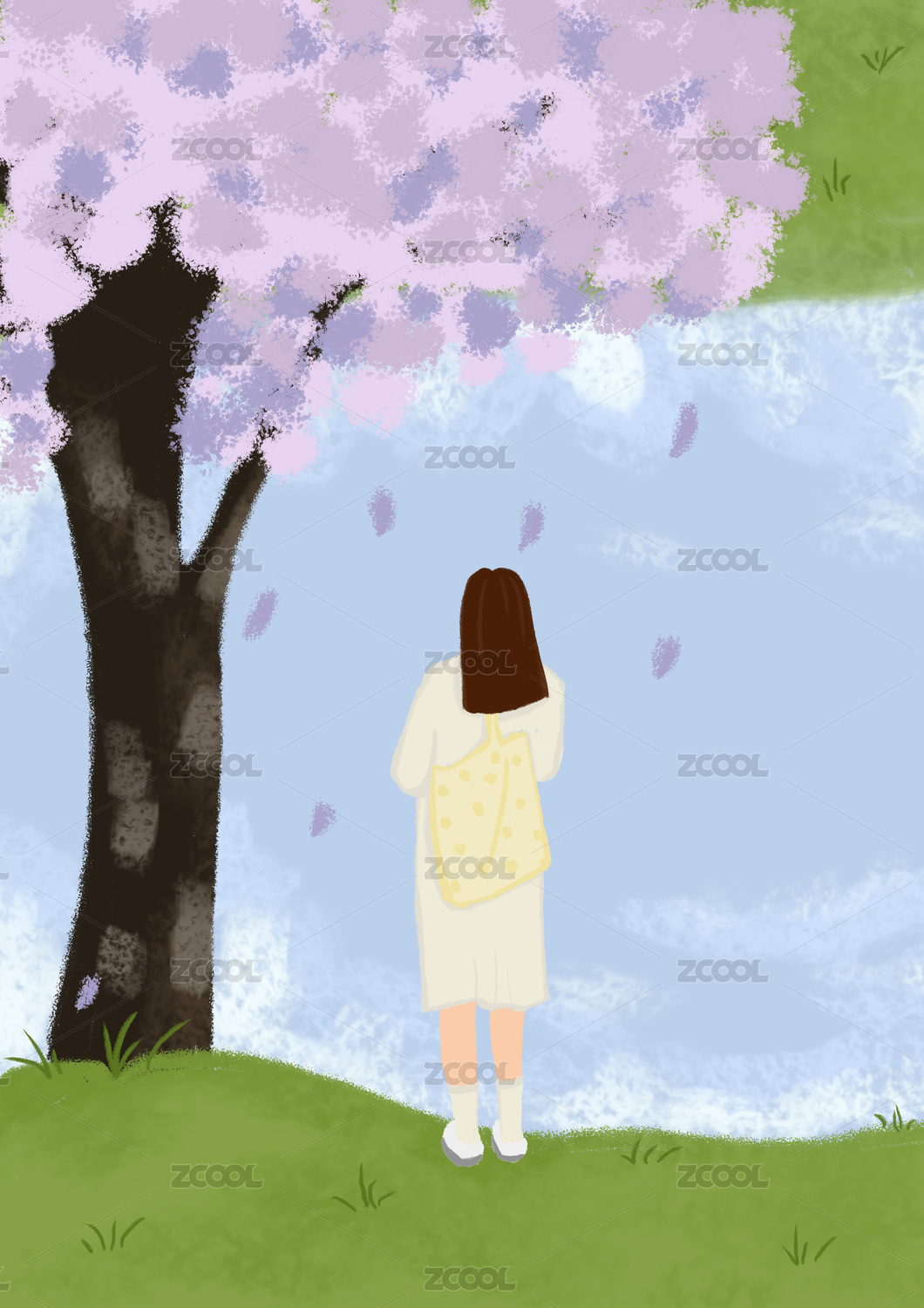 春天,春分,节气,植物,踏青,小女孩,红裙子,树木,绿色,草地