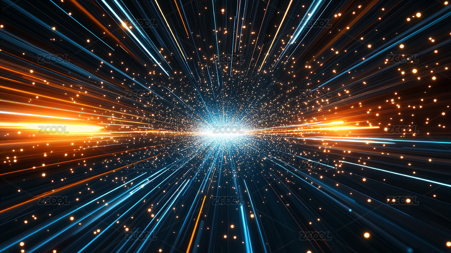蓝色和橙色光线汇聚成的速度与光线的抽象背