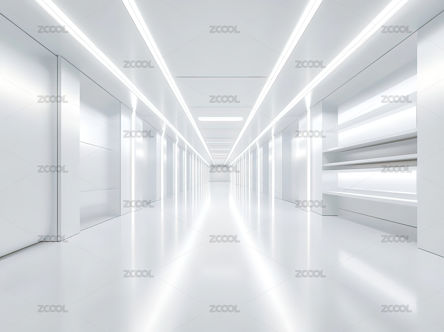 未来感十足的白色走廊