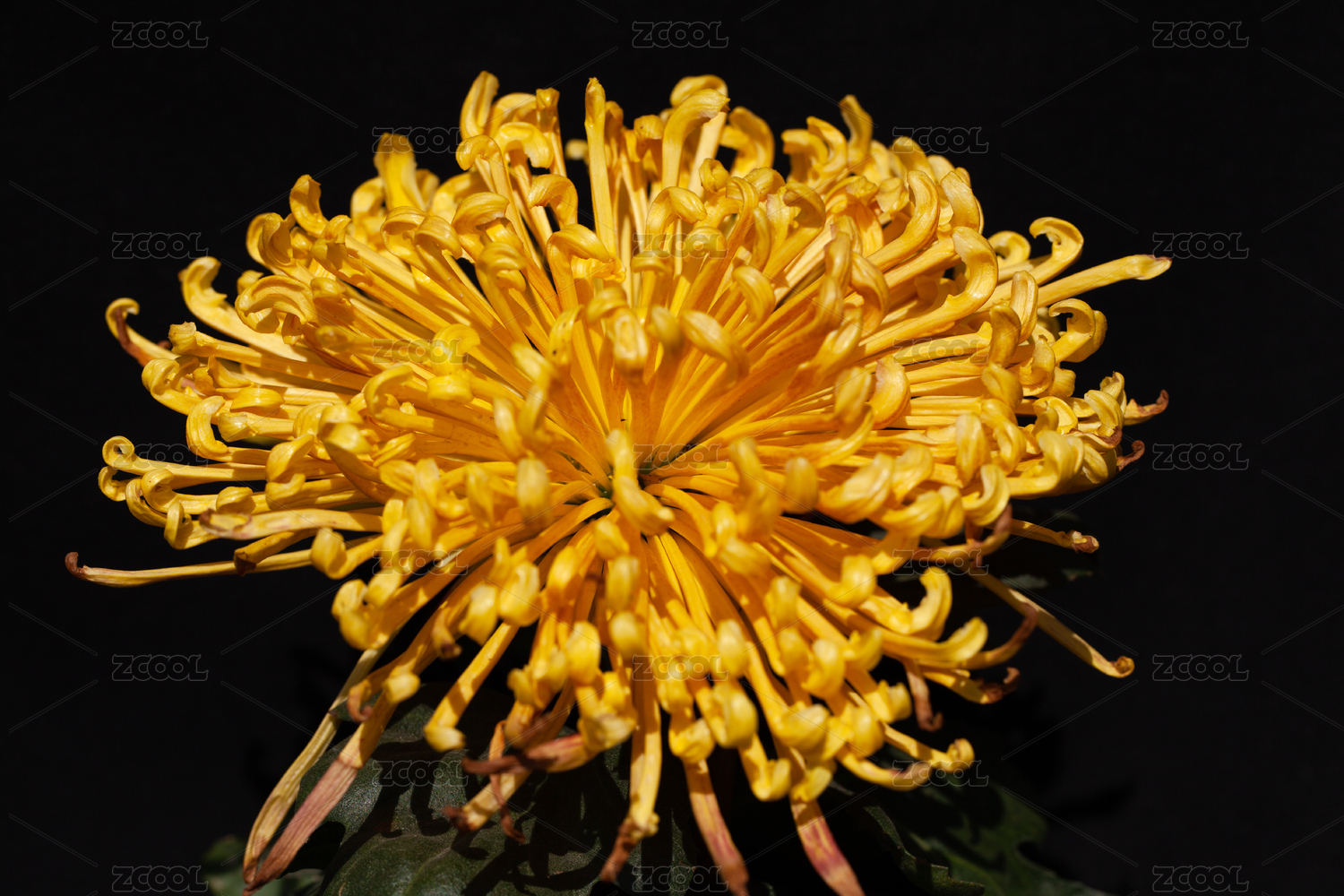 菊花展上盛开的美丽黄色菊花特写与黑色背景