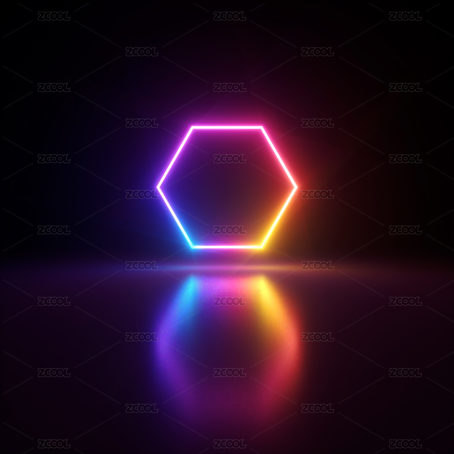 不同几何形状的五彩斑斓的舞台霓虹灯背景素材