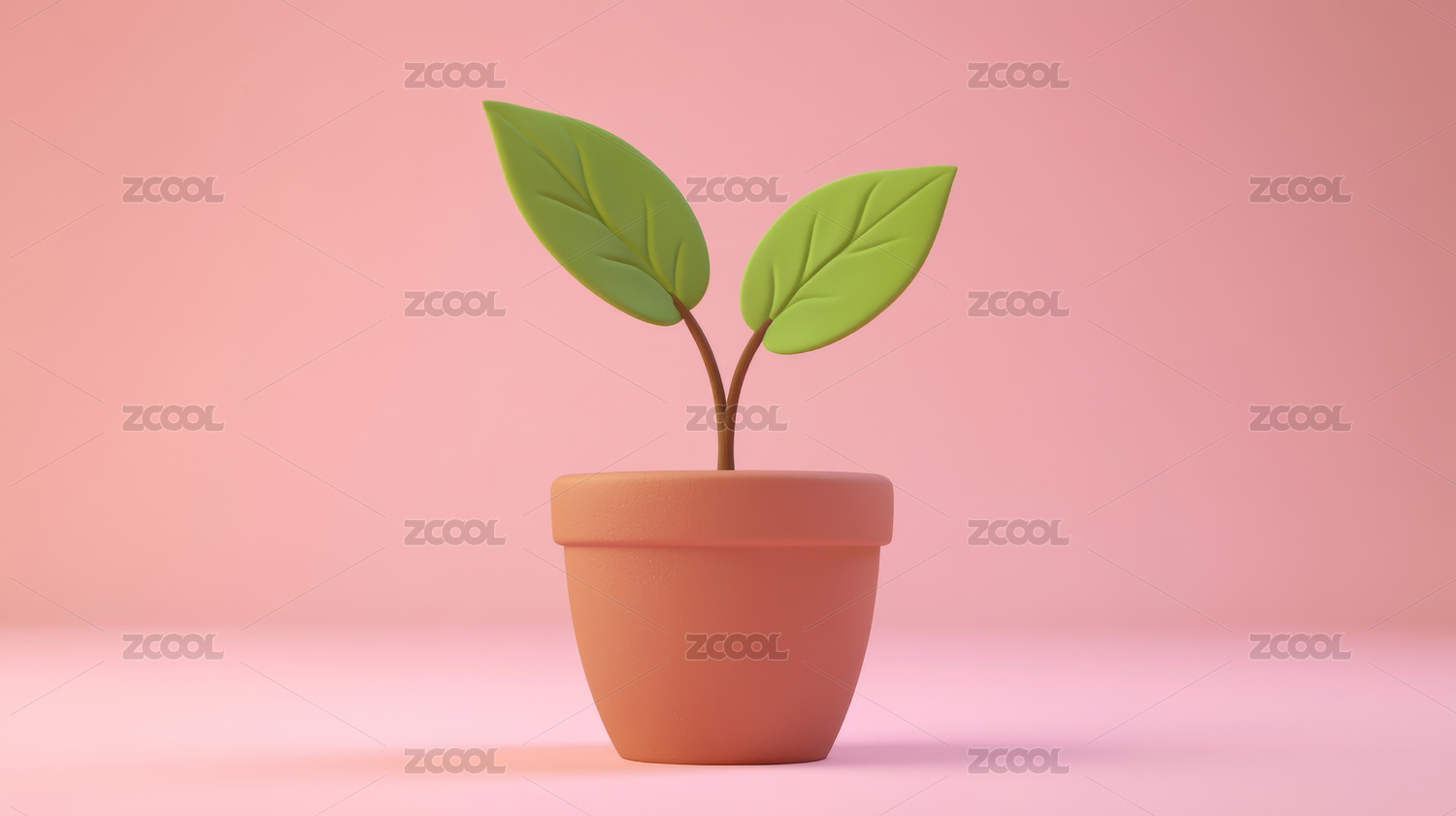 可爱绿色植物花盆3D园艺家居概念元素