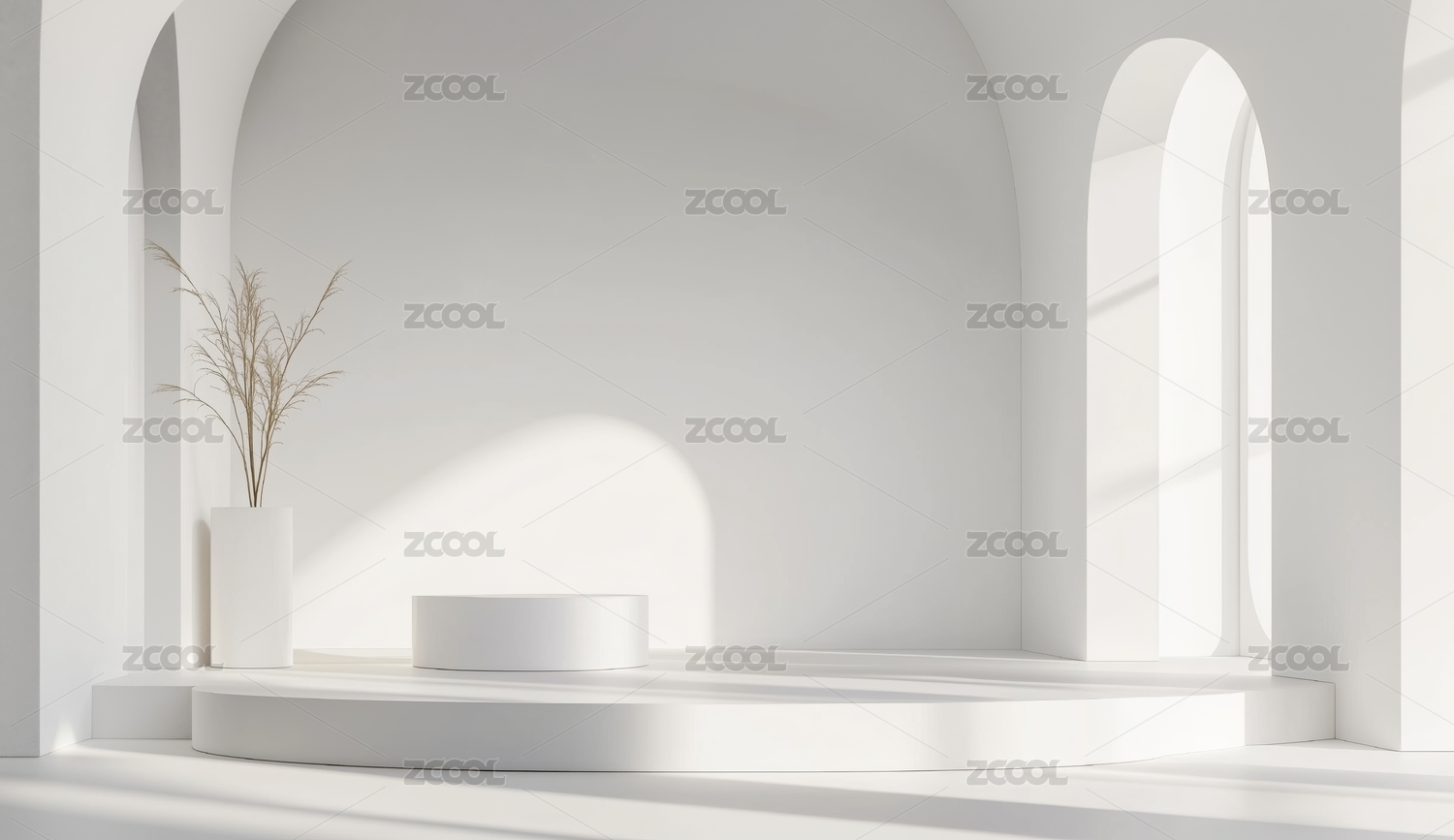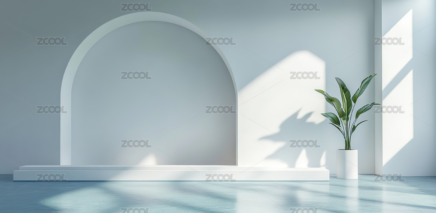 室内,绿植,木质,展台,光影,效果,简约,风格,自然,氛围