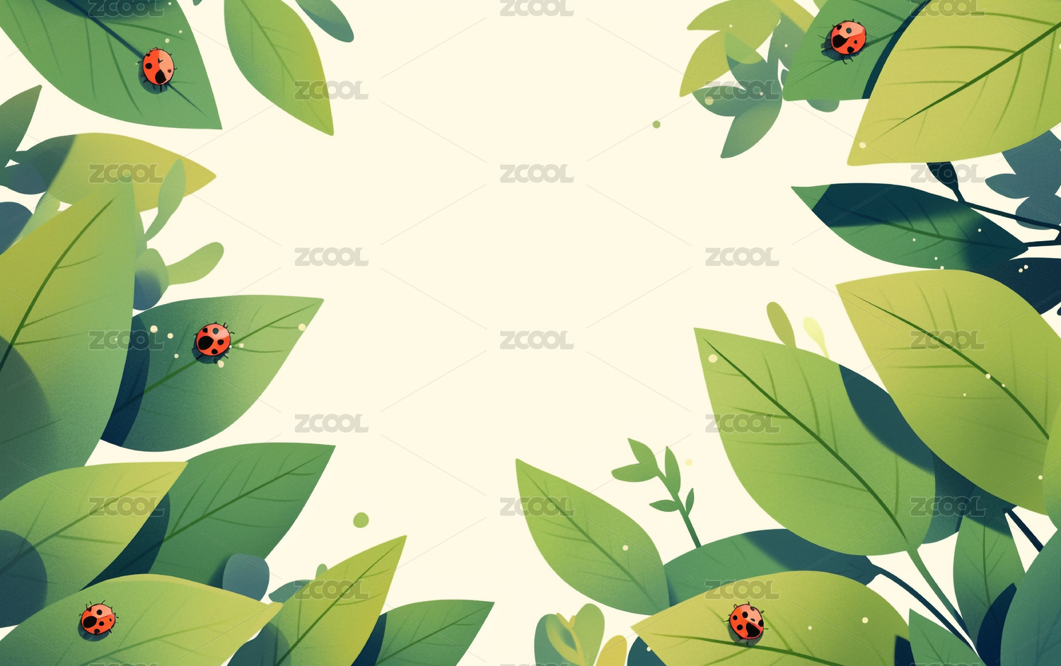 绿色,瓢虫,绿叶,白色,背景,清新,露珠,自然,生机,葱郁