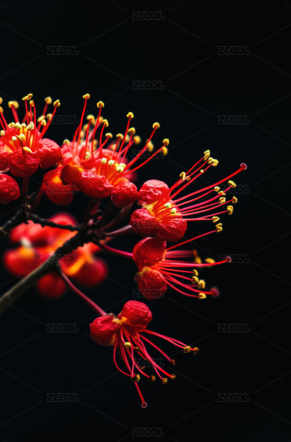 黑色背景下红色花朵的特写镜头