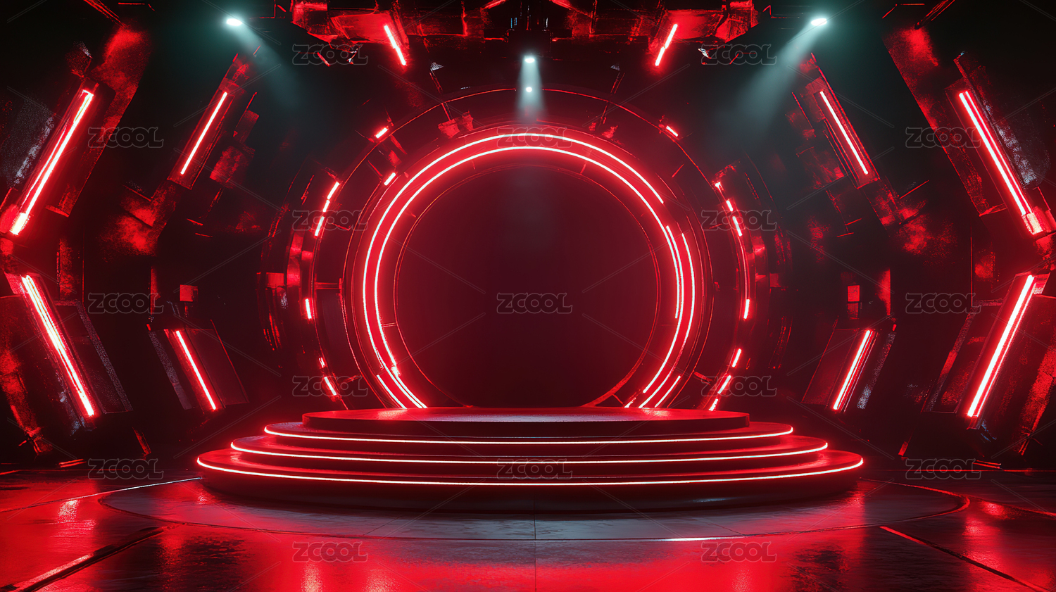 红色平台霓虹灯科技
