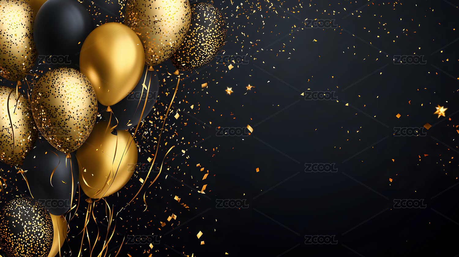 黑色金色气球庆祝背景