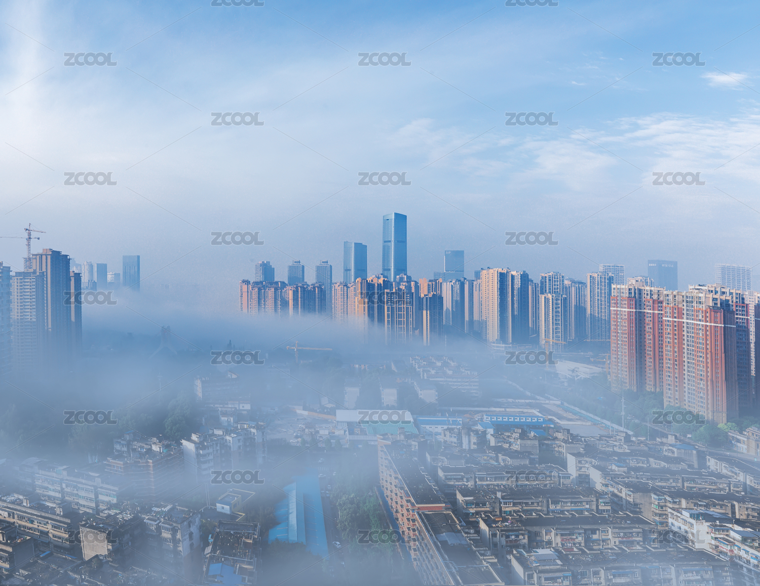 城市,高楼大厦,云雾,天空,云层,云海,天际线,壮丽,宁静,神秘