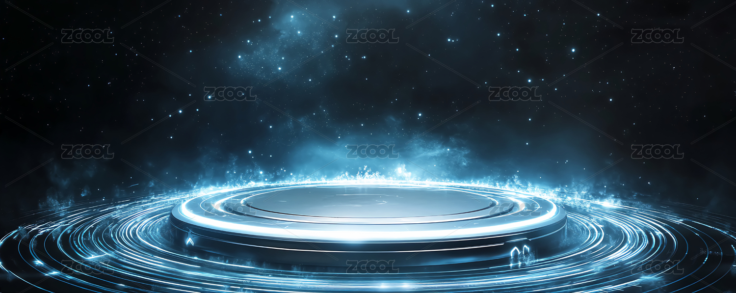 蓝色圆形发光展台