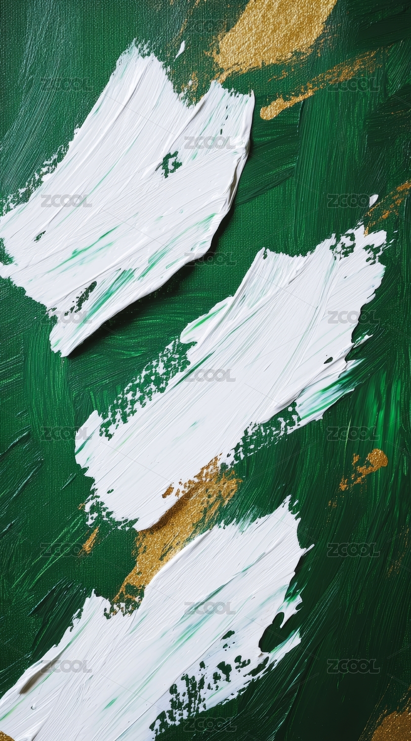 绿色背景上的白色与金色抽象笔触