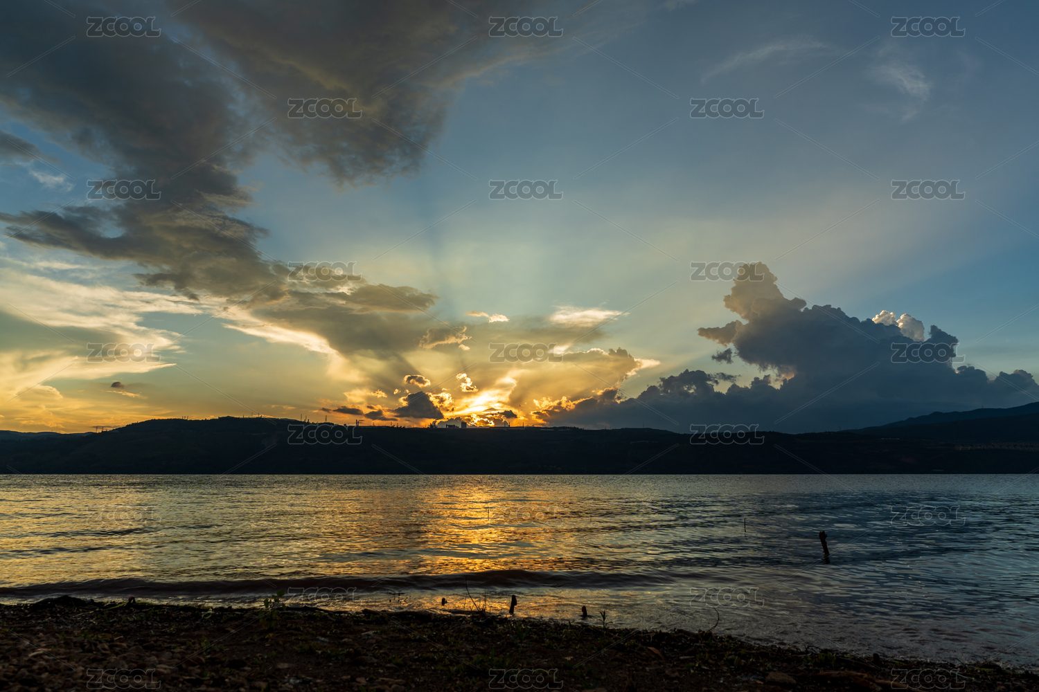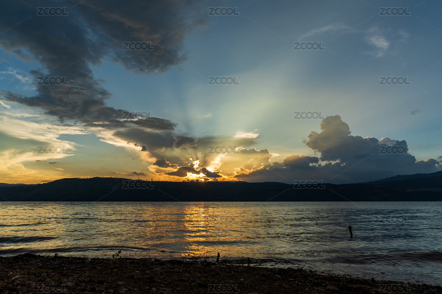 黄昏,日落,水面,光线,云彩,风景,远景,自然,夕阳,晚霞
