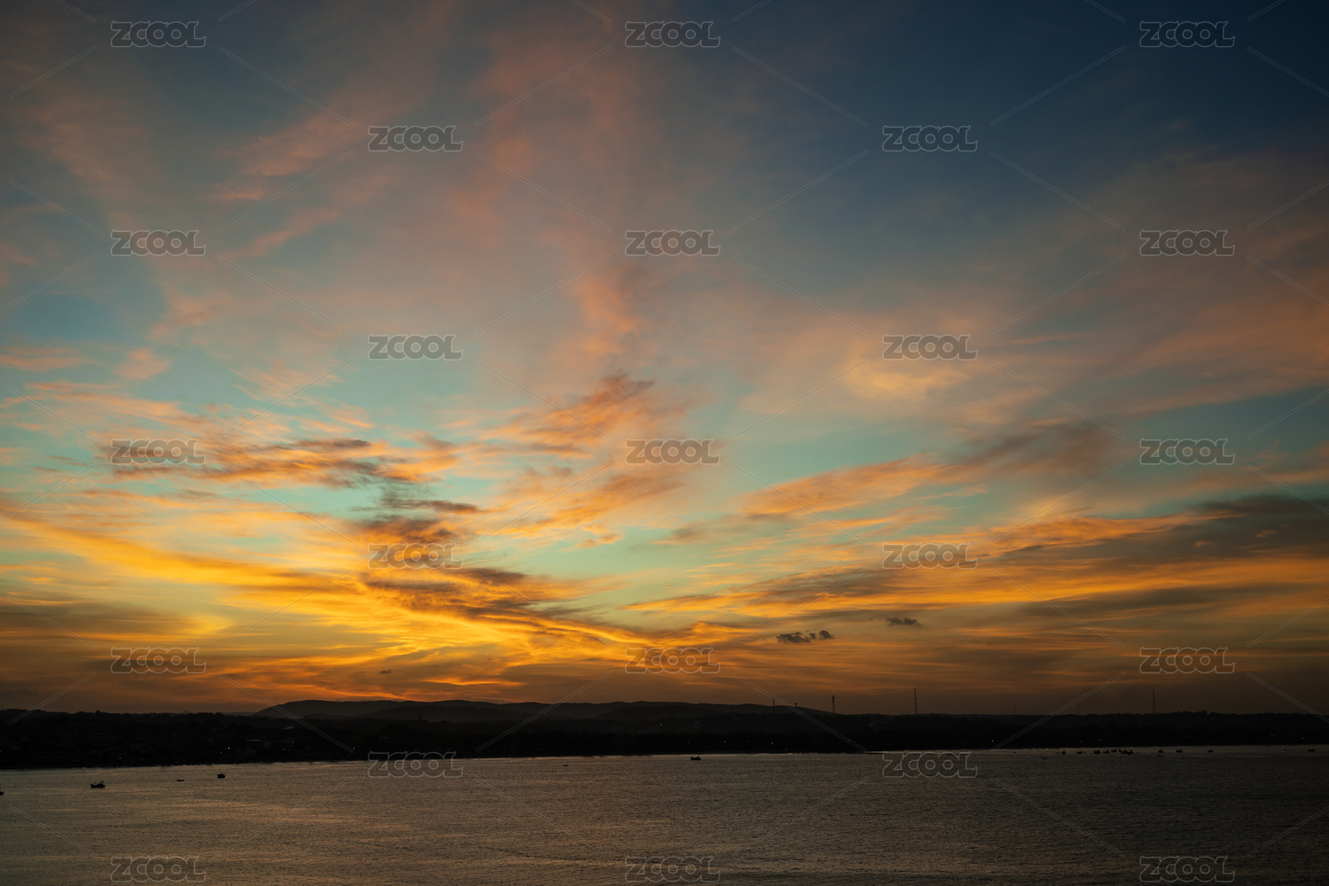 水边日落时分壮丽的天空景观