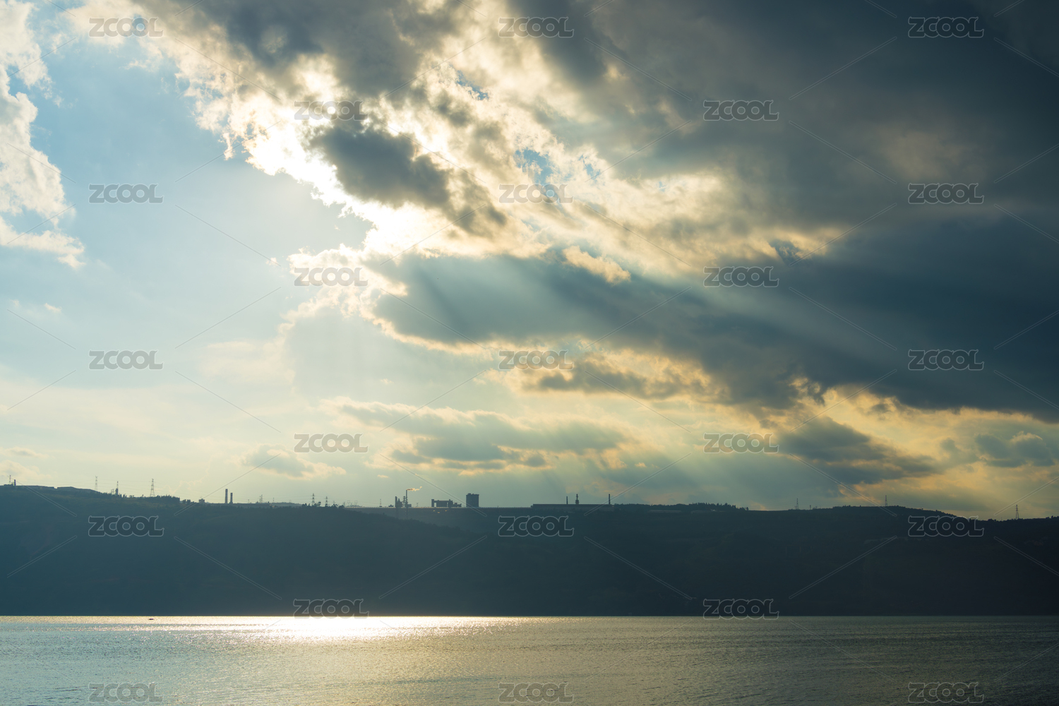 水面上的天空云层与光线交织的景象