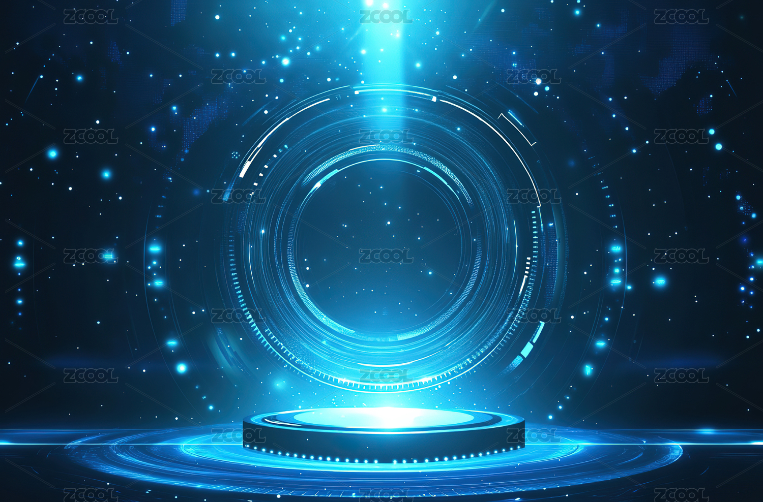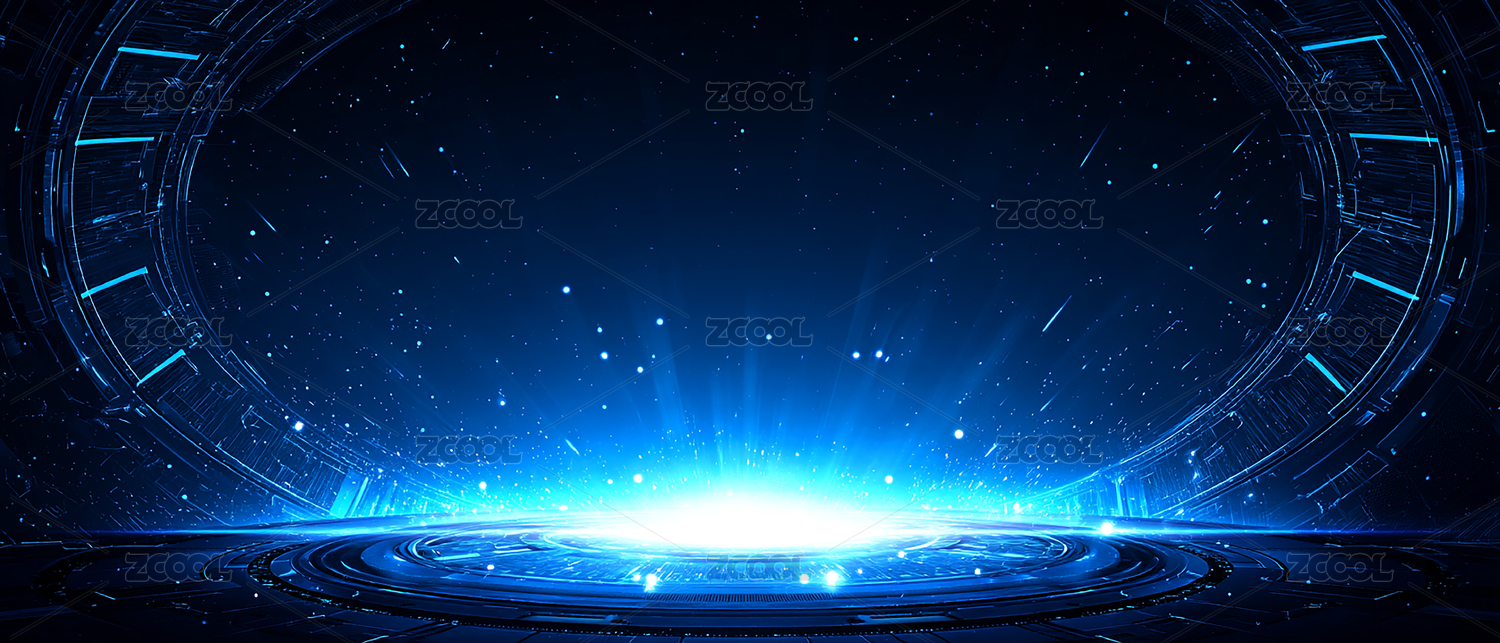 蓝色科技光效科幻空间产品展台背景