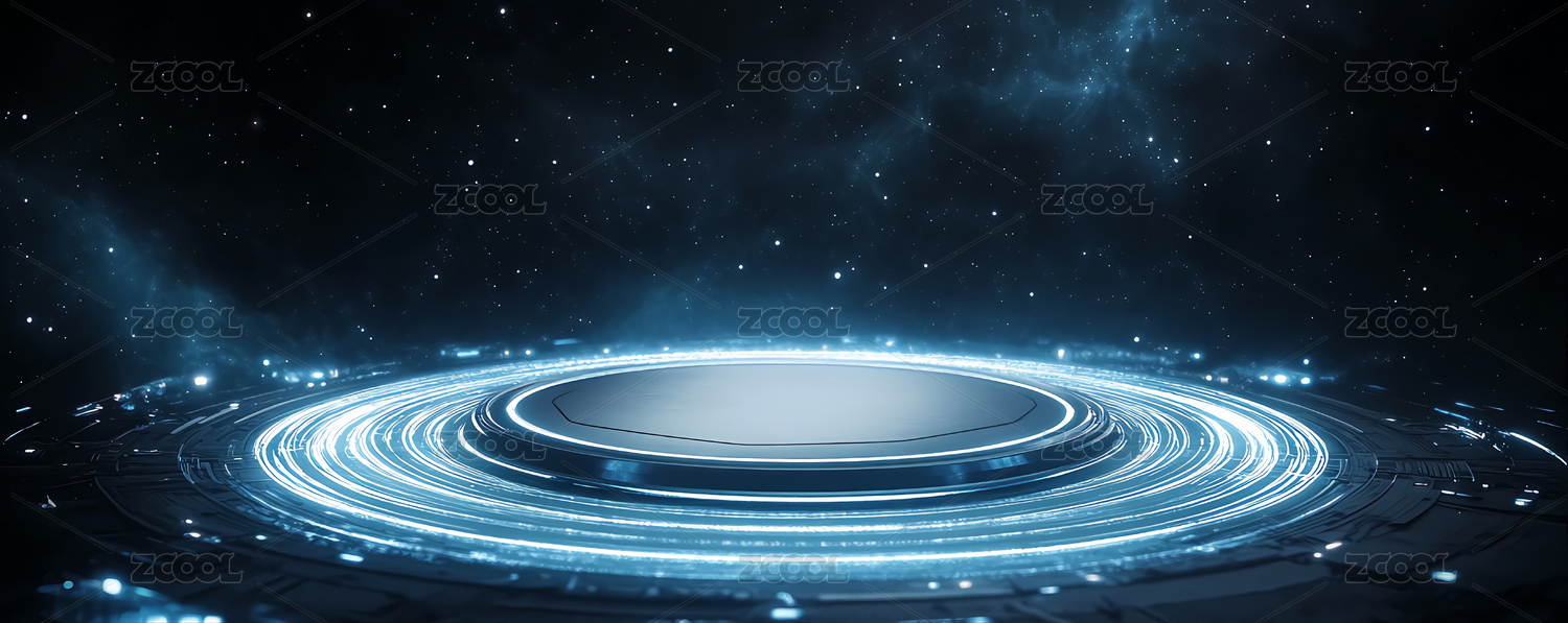 蓝色圆形平台点缀星空