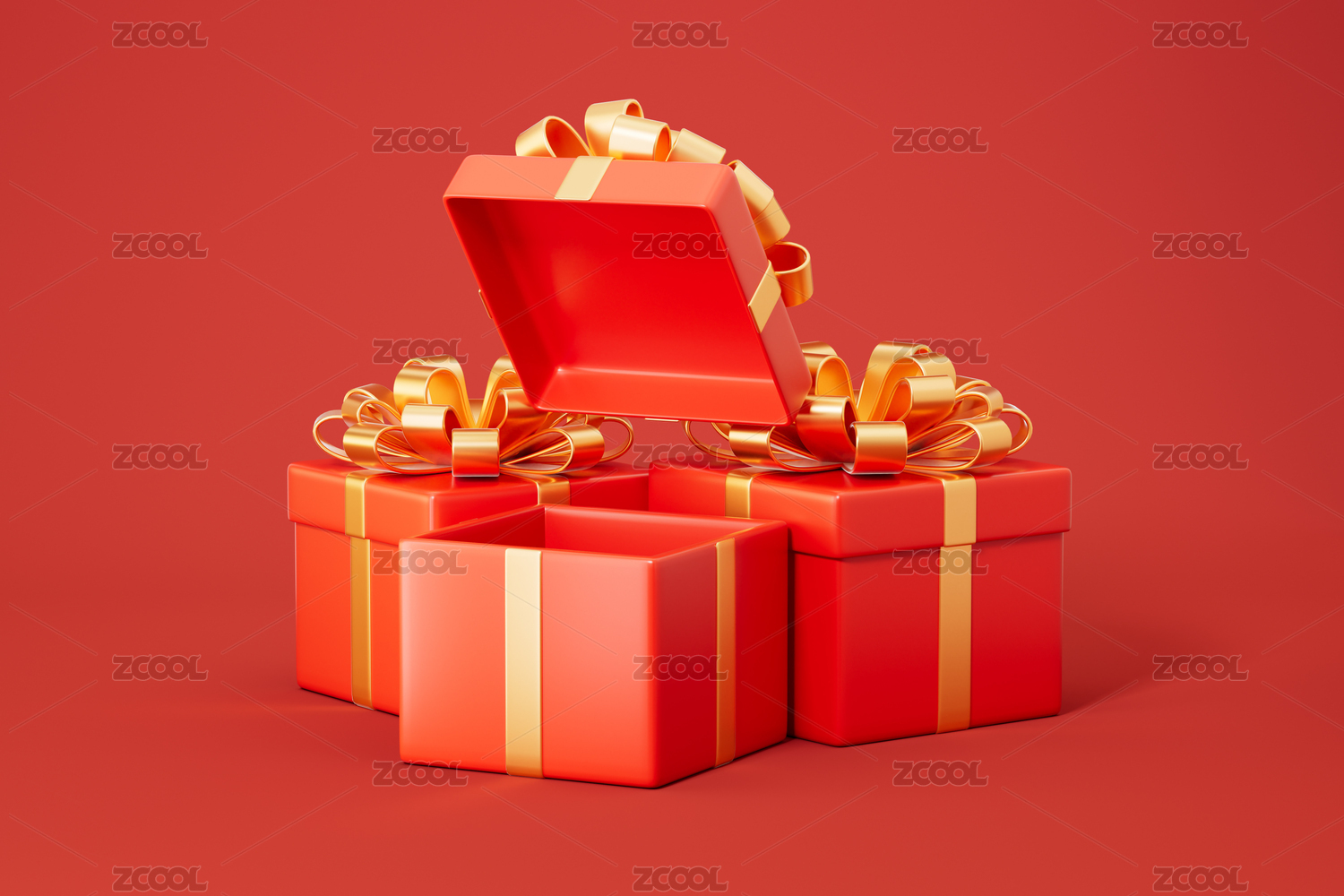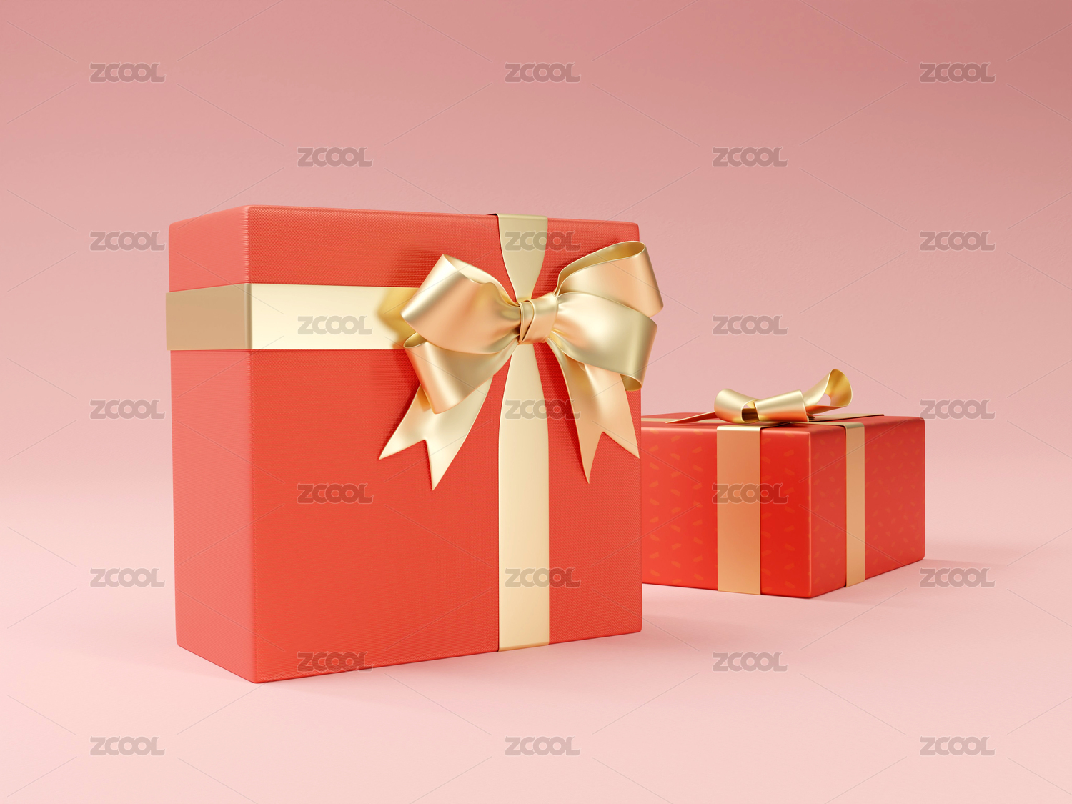 浅色背景红色礼盒和打结的蝴蝶结丝带