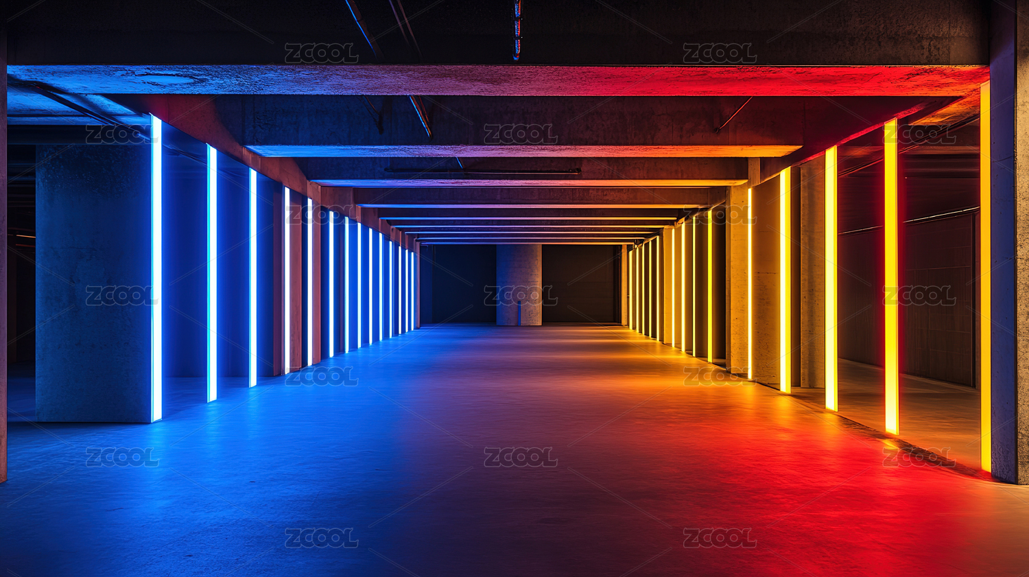 彩色灯光下的地下通道