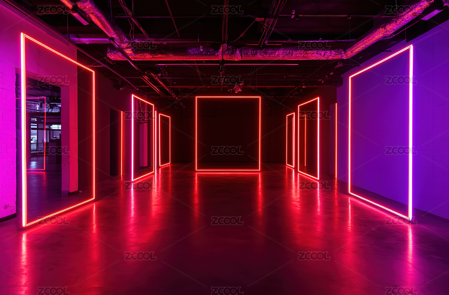 霓虹灯照亮的粉色走廊,充满未来感