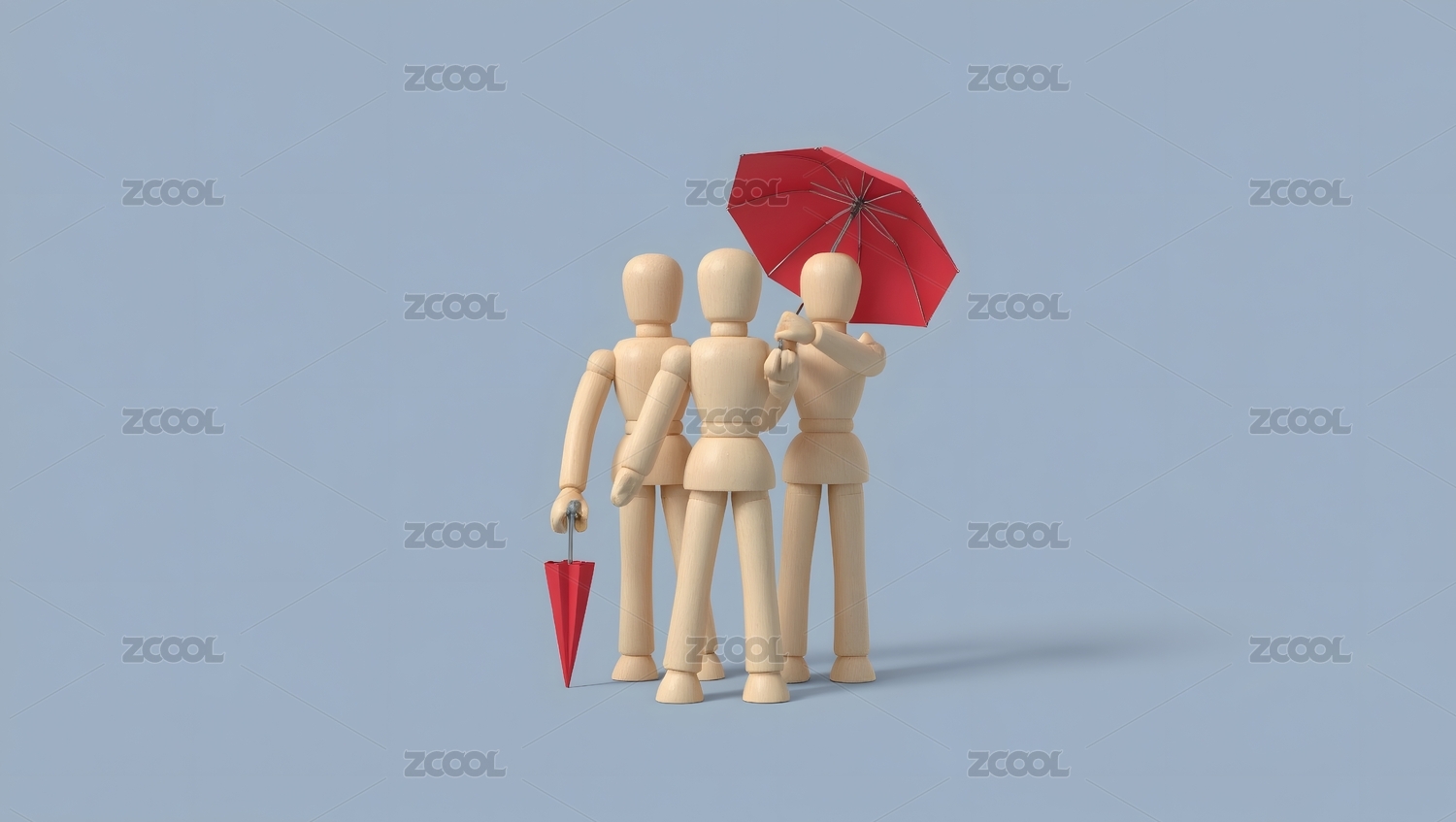 一家四口在雨中伞下——商人保护家人,保险的概念