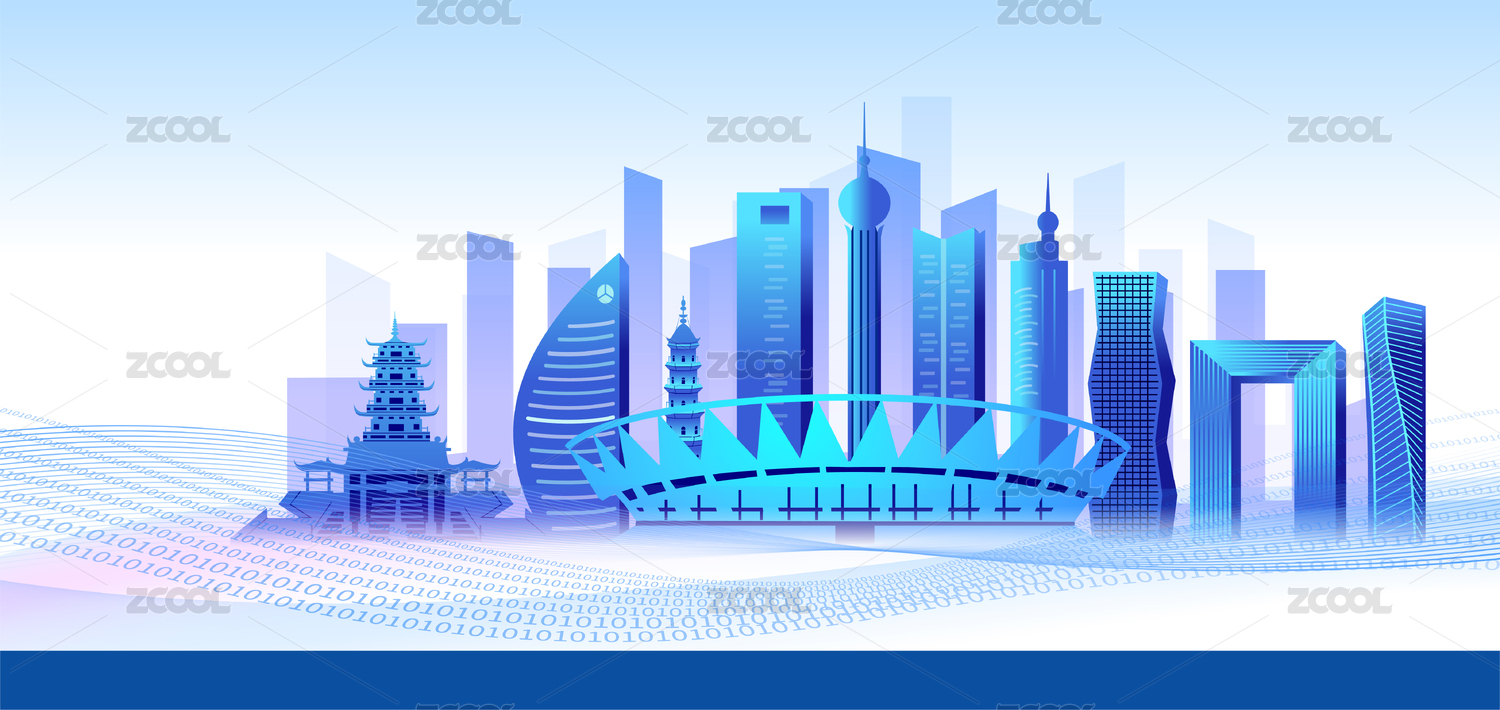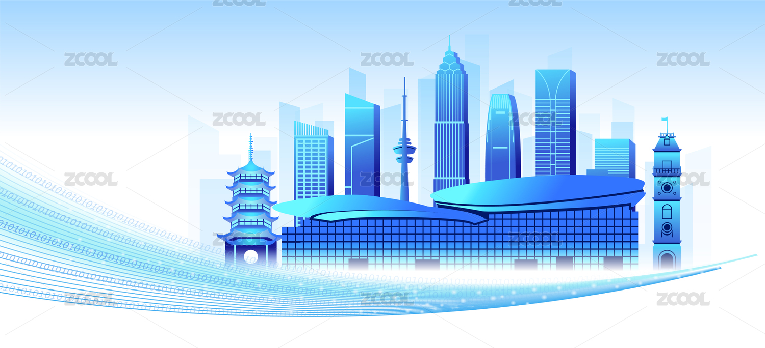 中国内蒙古呼和浩特市商务科技城市彩色插画