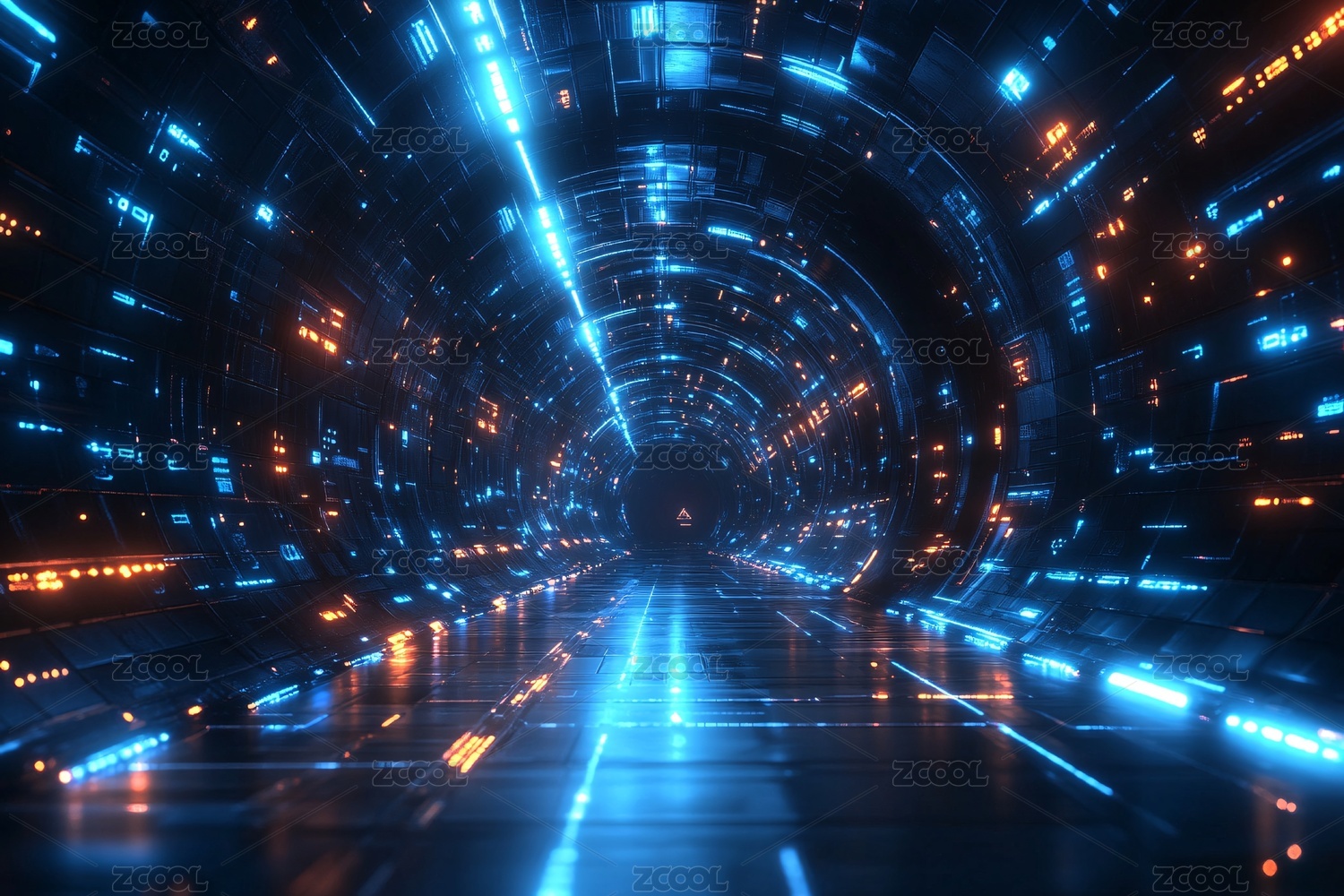 黑暗隧道发光照明抽象技术速度概念三维渲染