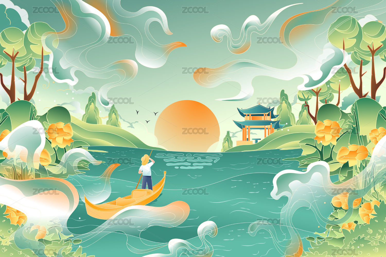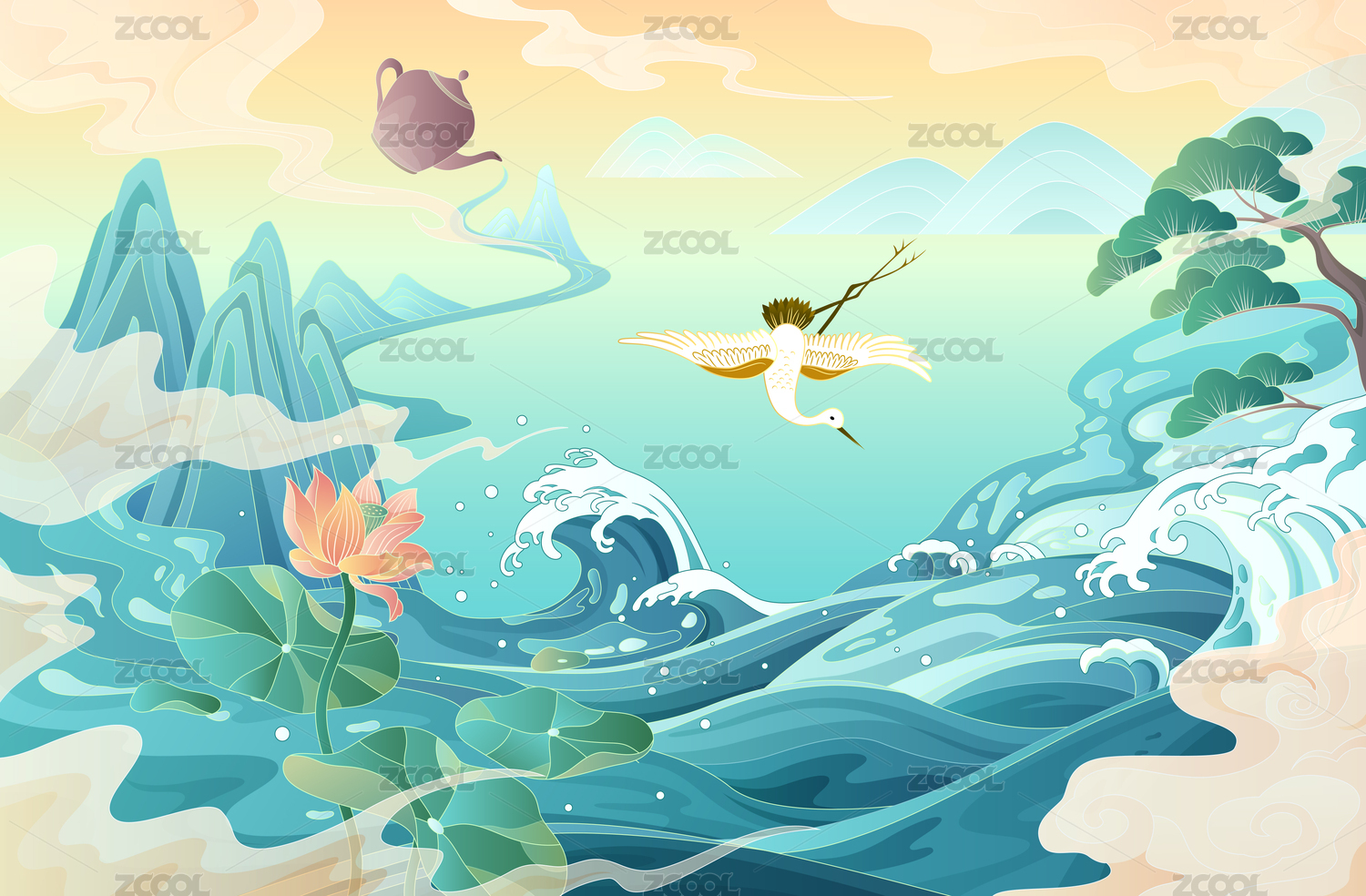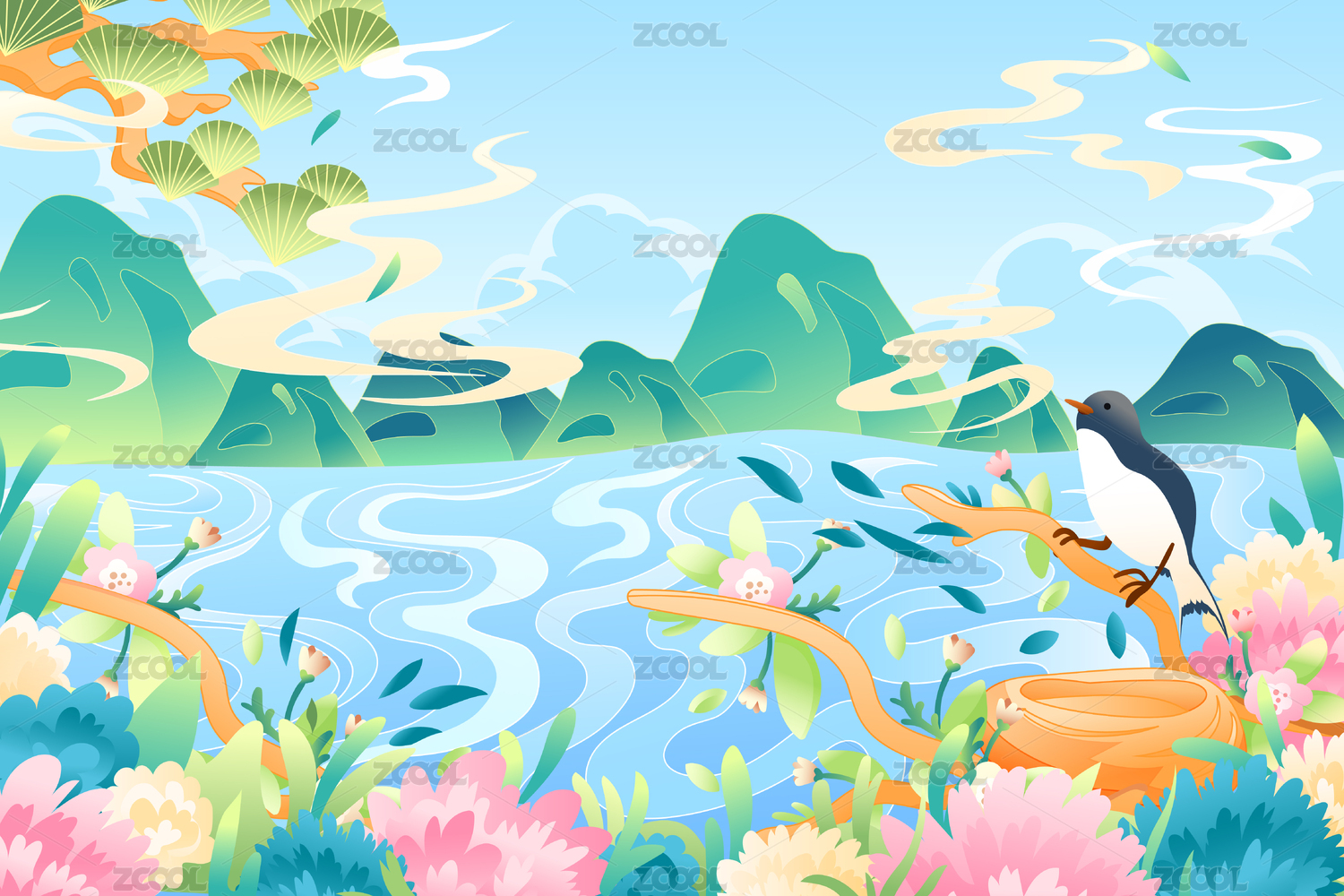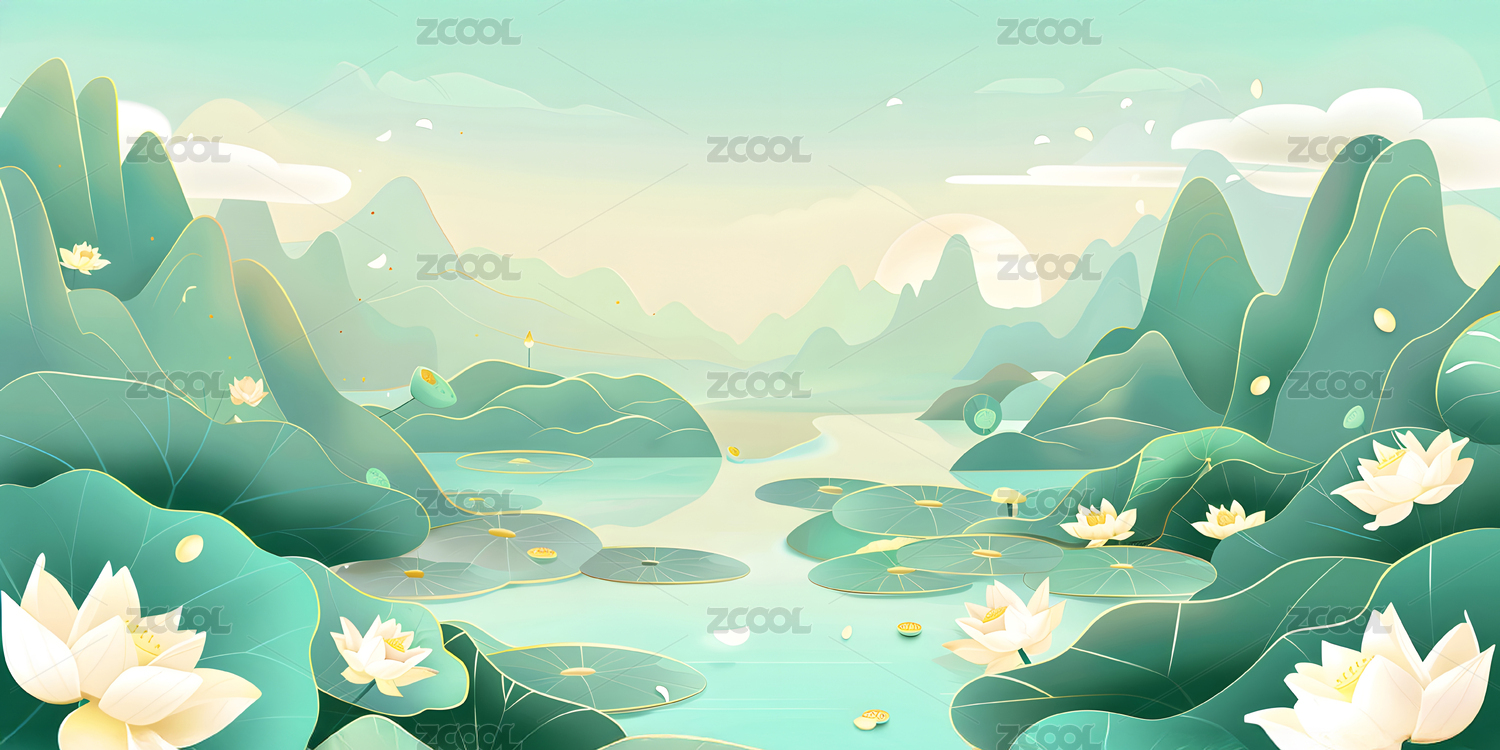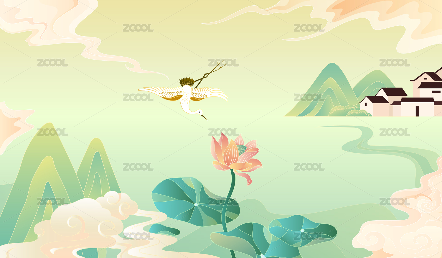 花,荷花,夏季,山水,绿色,中国,中国风,传统,矢量,背景
