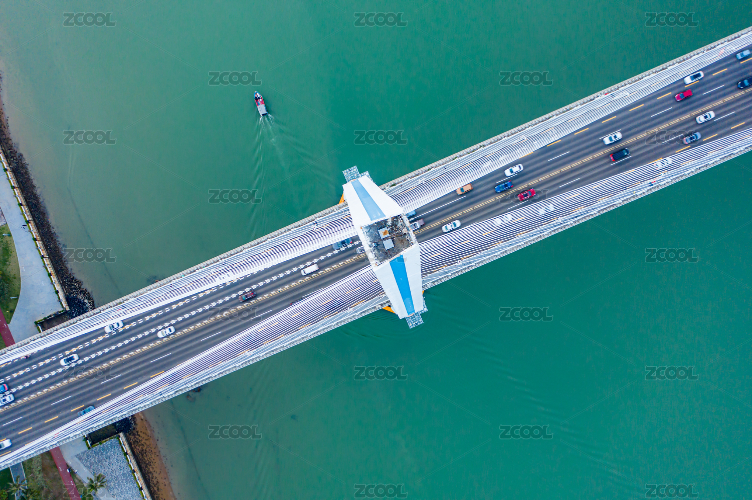 航拍海南海口世纪大桥海甸河入海口跨海大桥