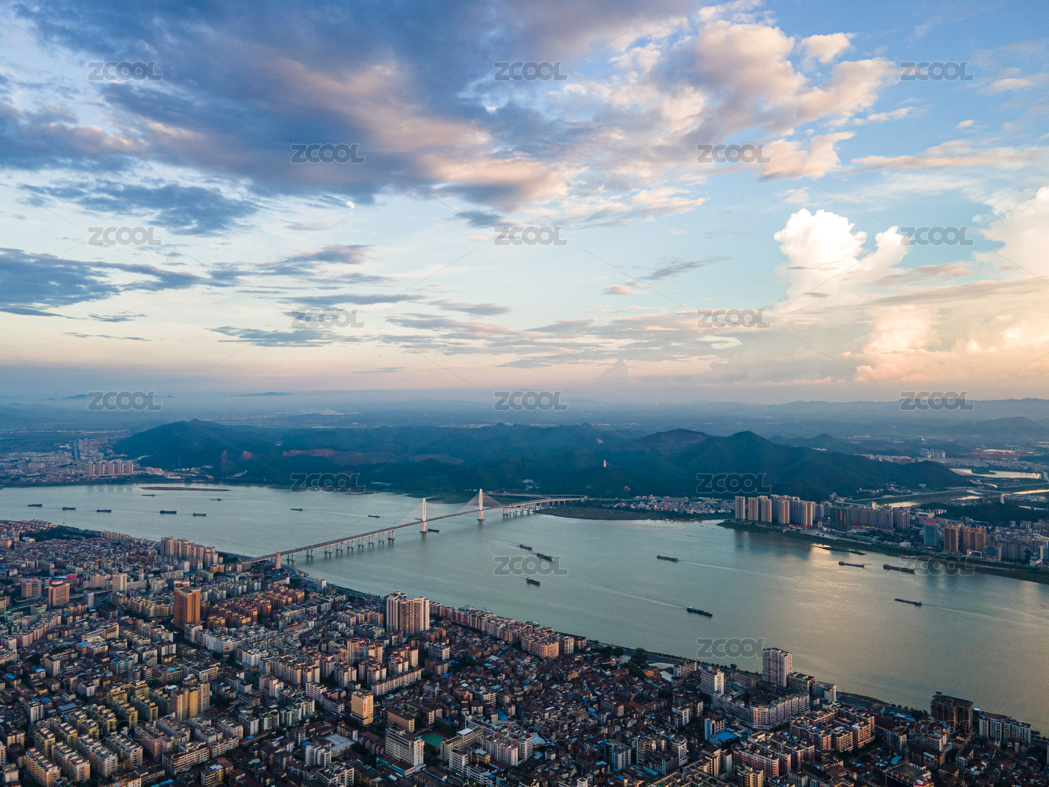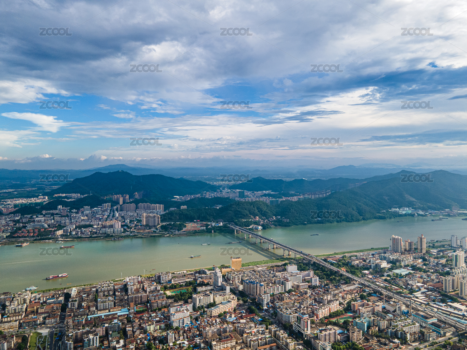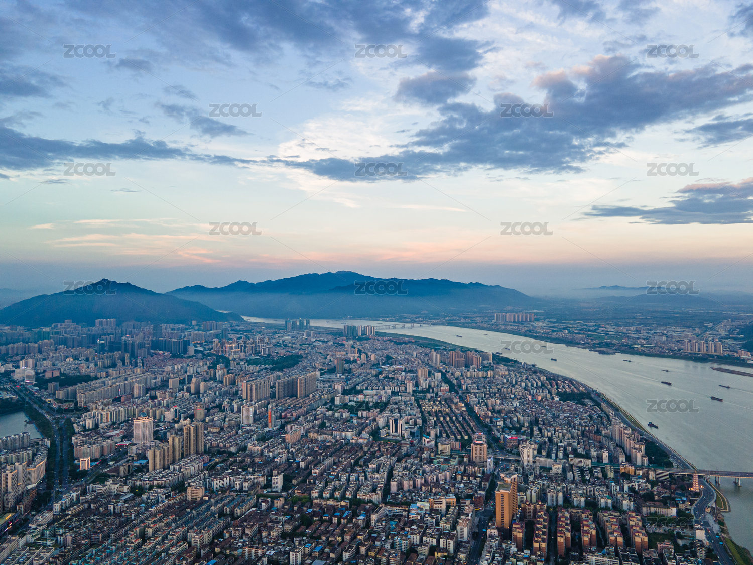 广东省肇庆市城市风光天际线全景