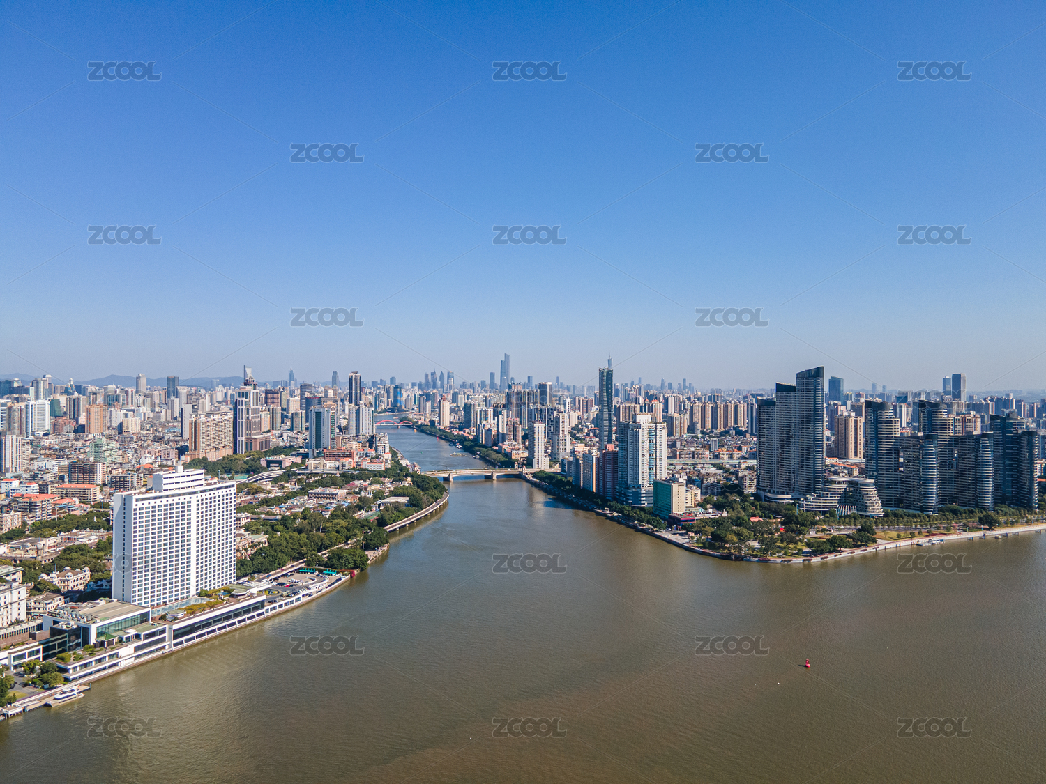 广州白鹅潭和沙面白天鹅宾馆城市天际线