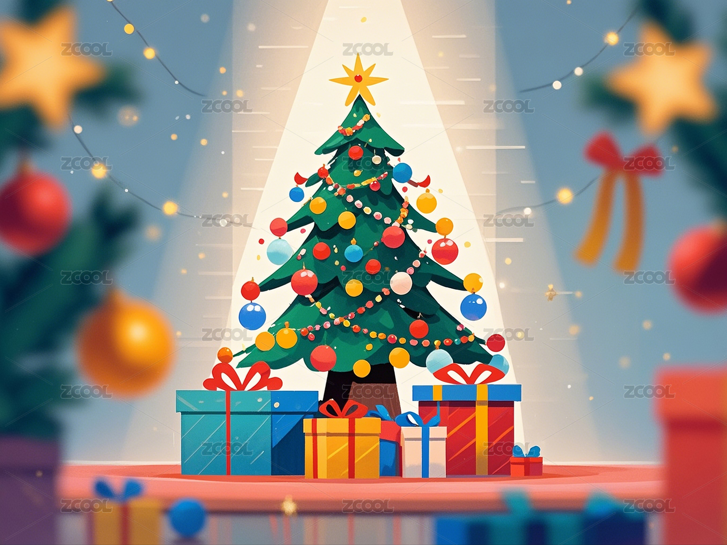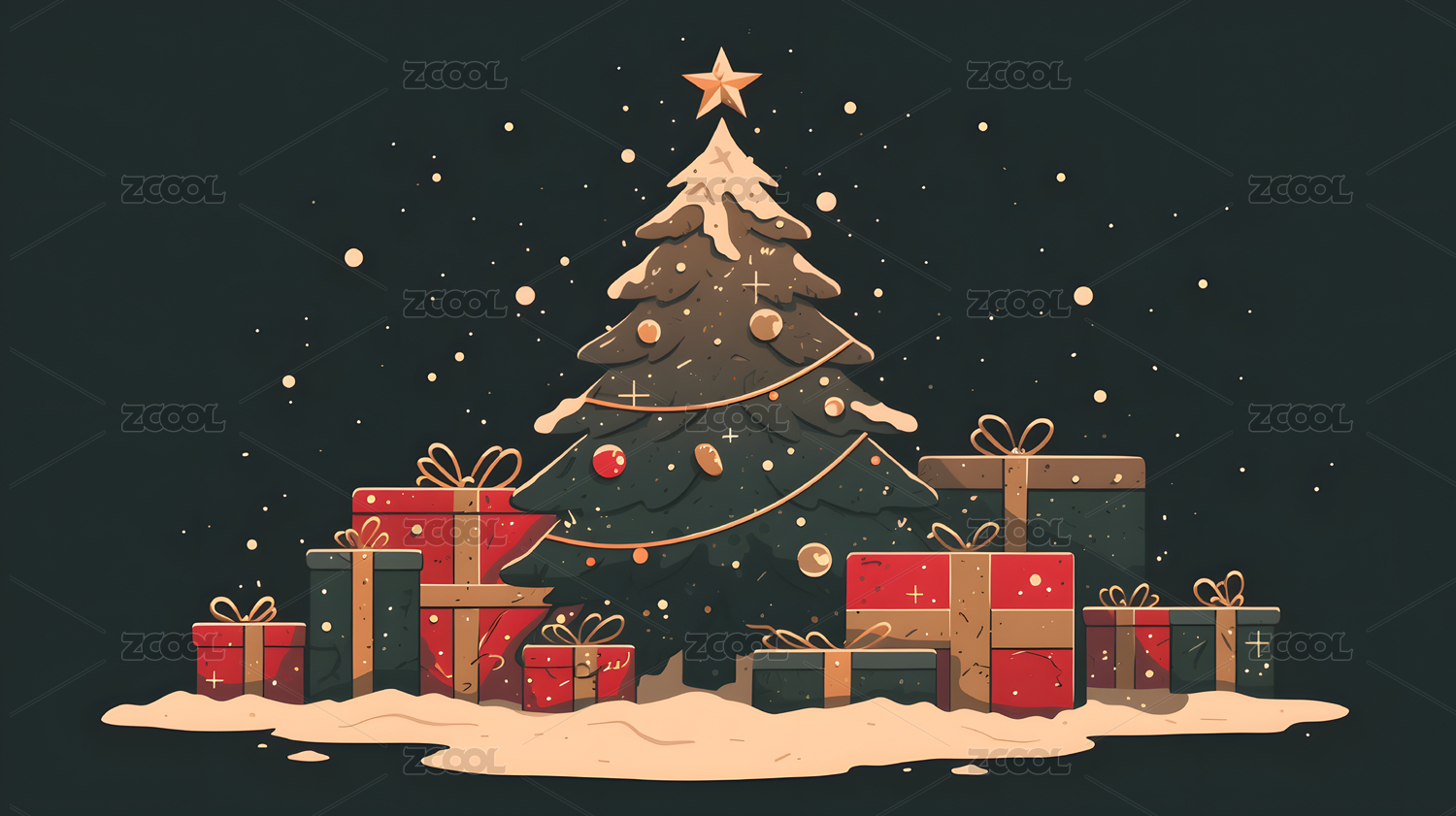 插画,AI数字艺术,背景,设计,圣诞节,装饰,庆祝,红色,节日,可爱的