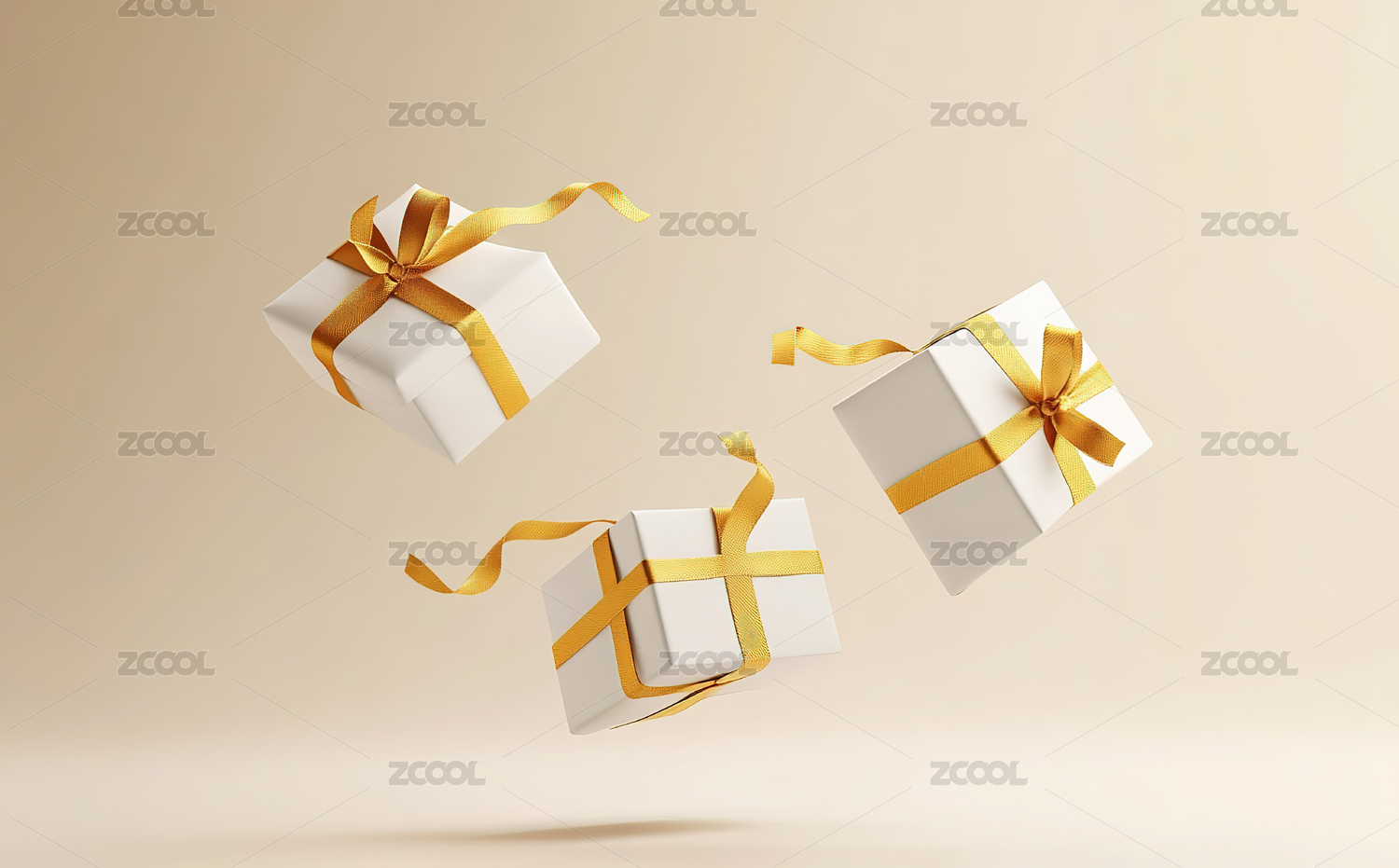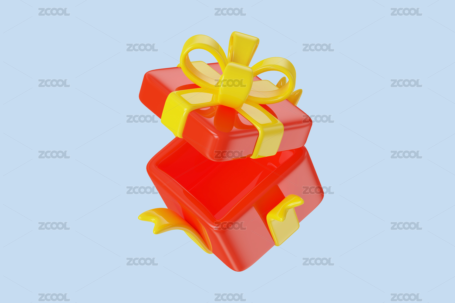 3D金边带问号的红色礼盒盲盒与红包灯笼