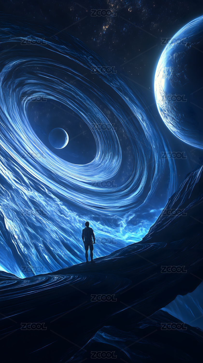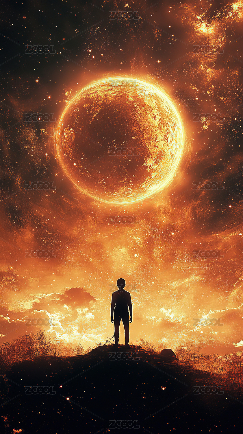 梦幻,唯美,超现实,天空,奇幻,背景,人物,剪影,背影,数字