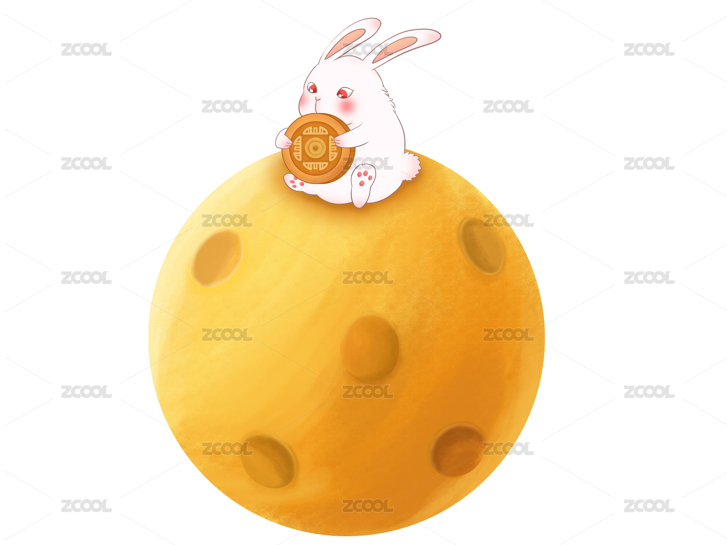 中秋,中秋节,卡通,可爱,玉兔,兔子,玉兔捣药,元素,素材,月亮