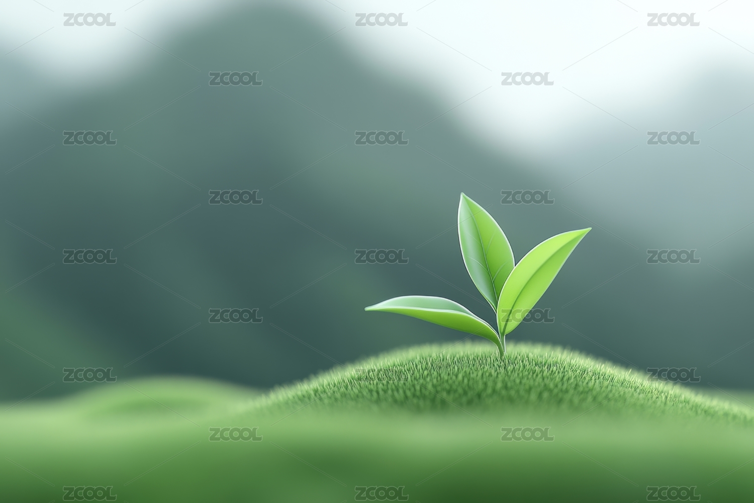 小苗与渐变绿色线条