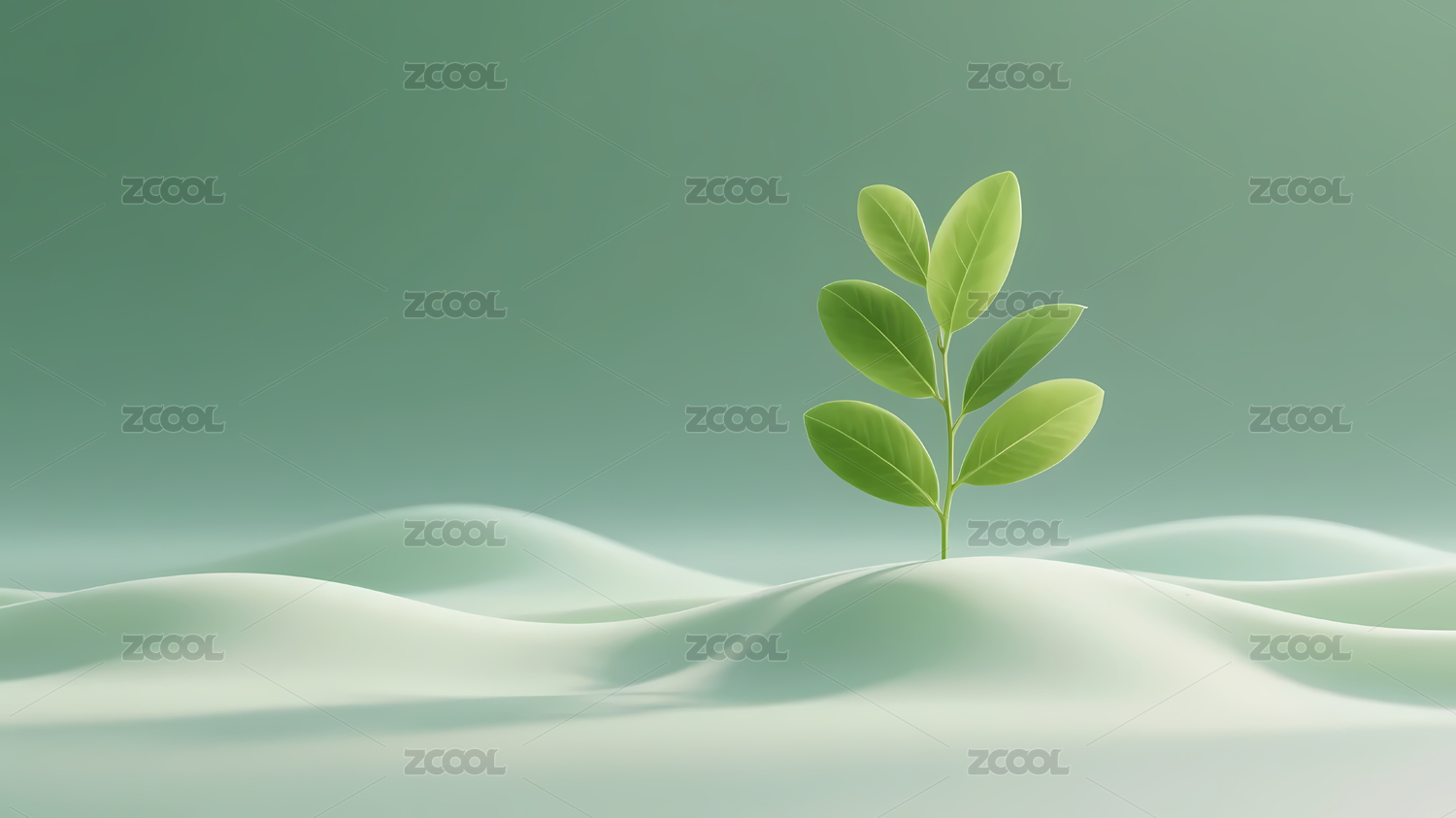 小植物与浅绿色波浪图案