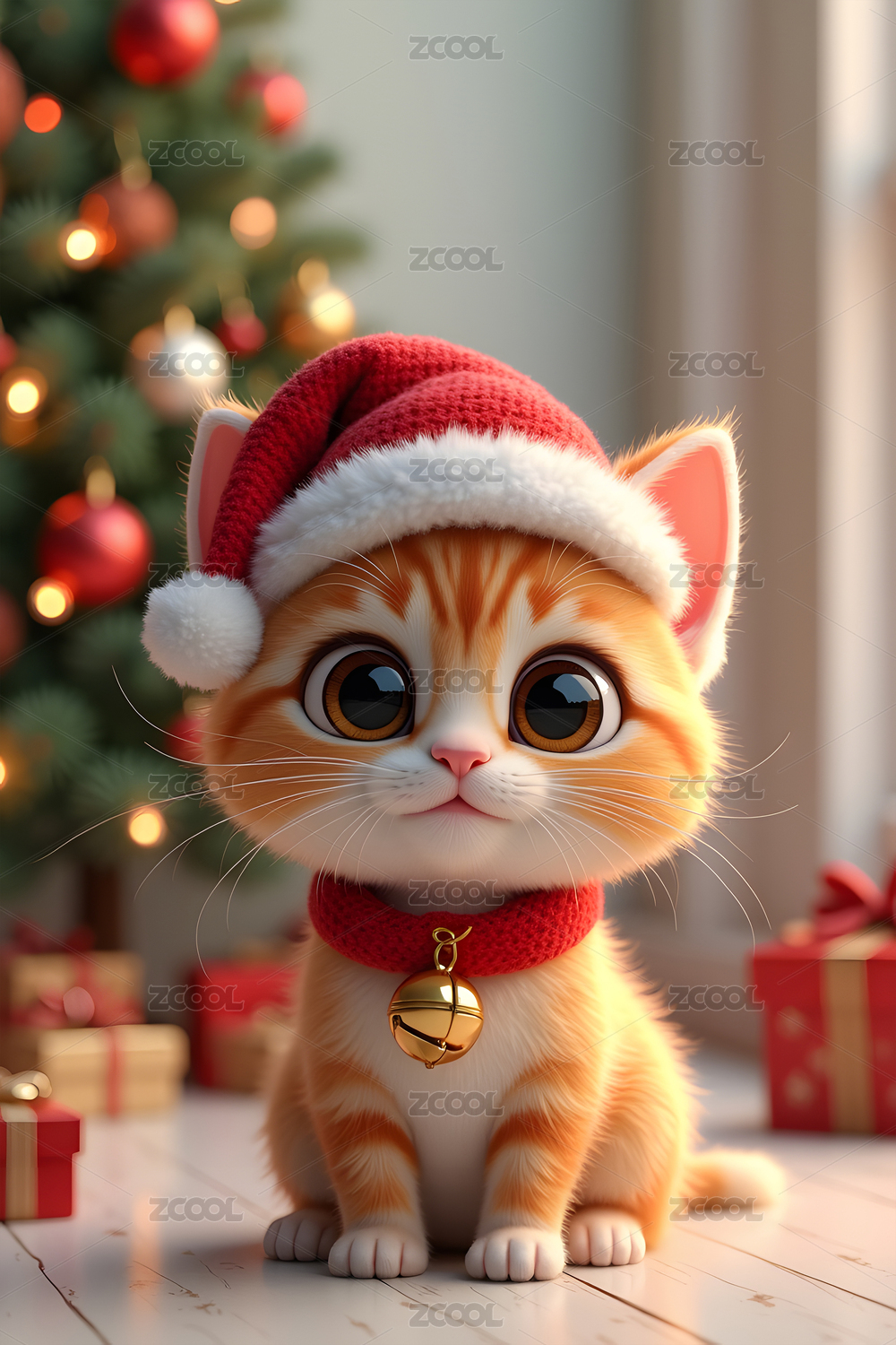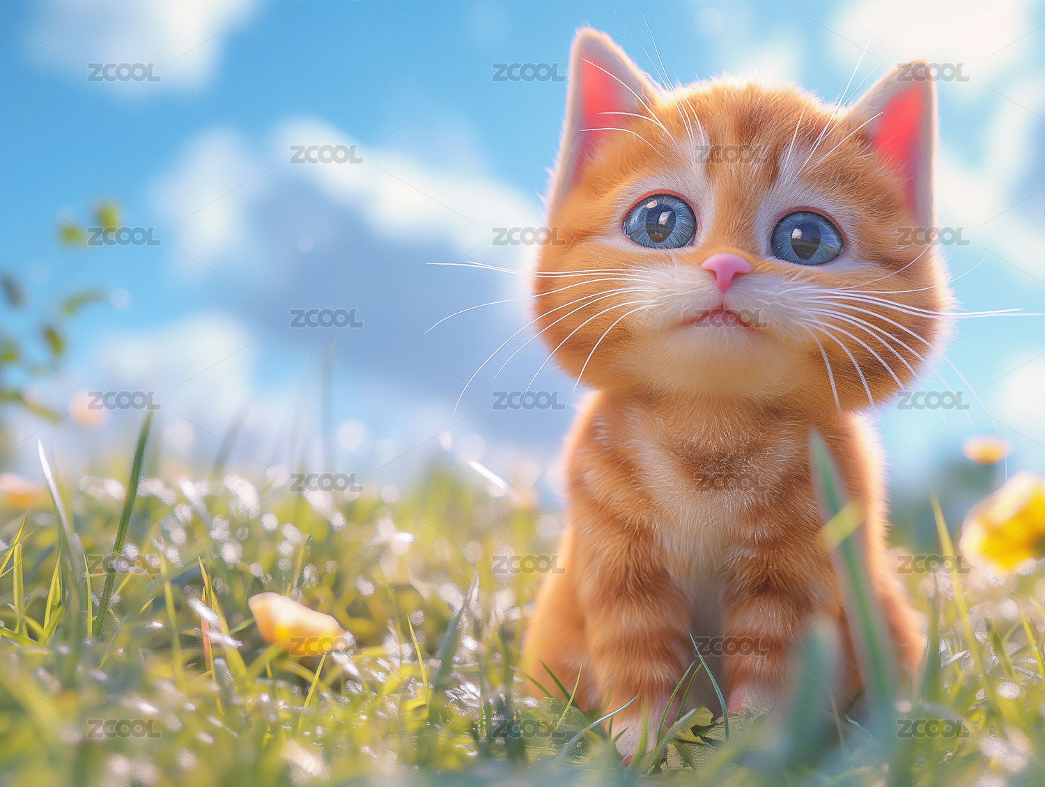 梦幻一只仰着脸的宠物猫3D立体卡通插画