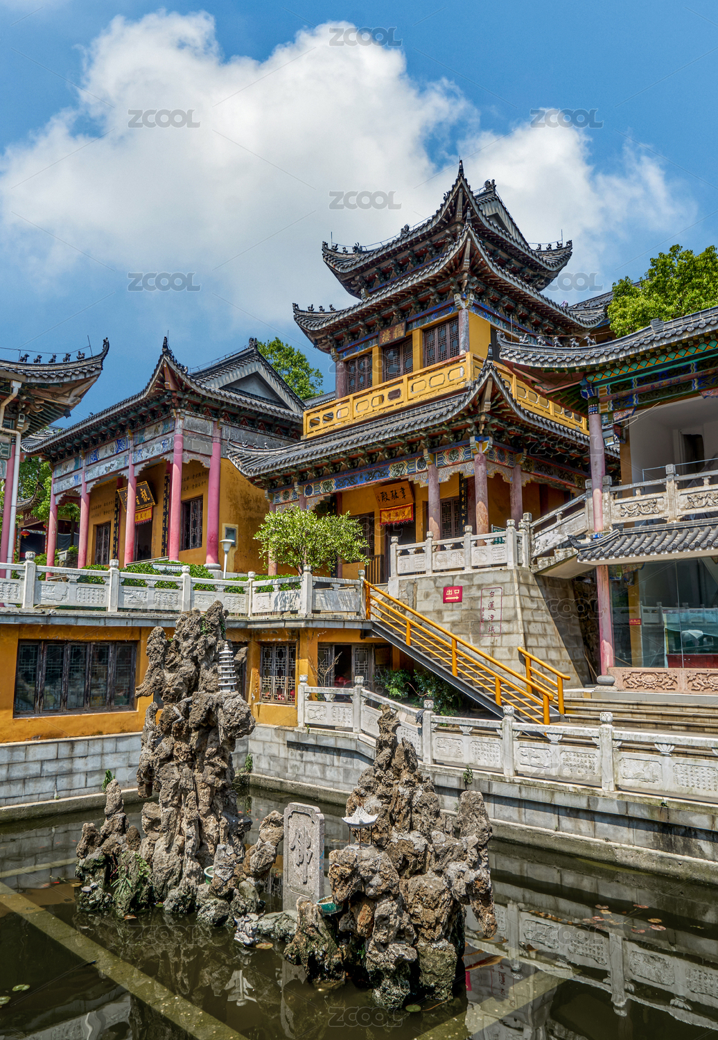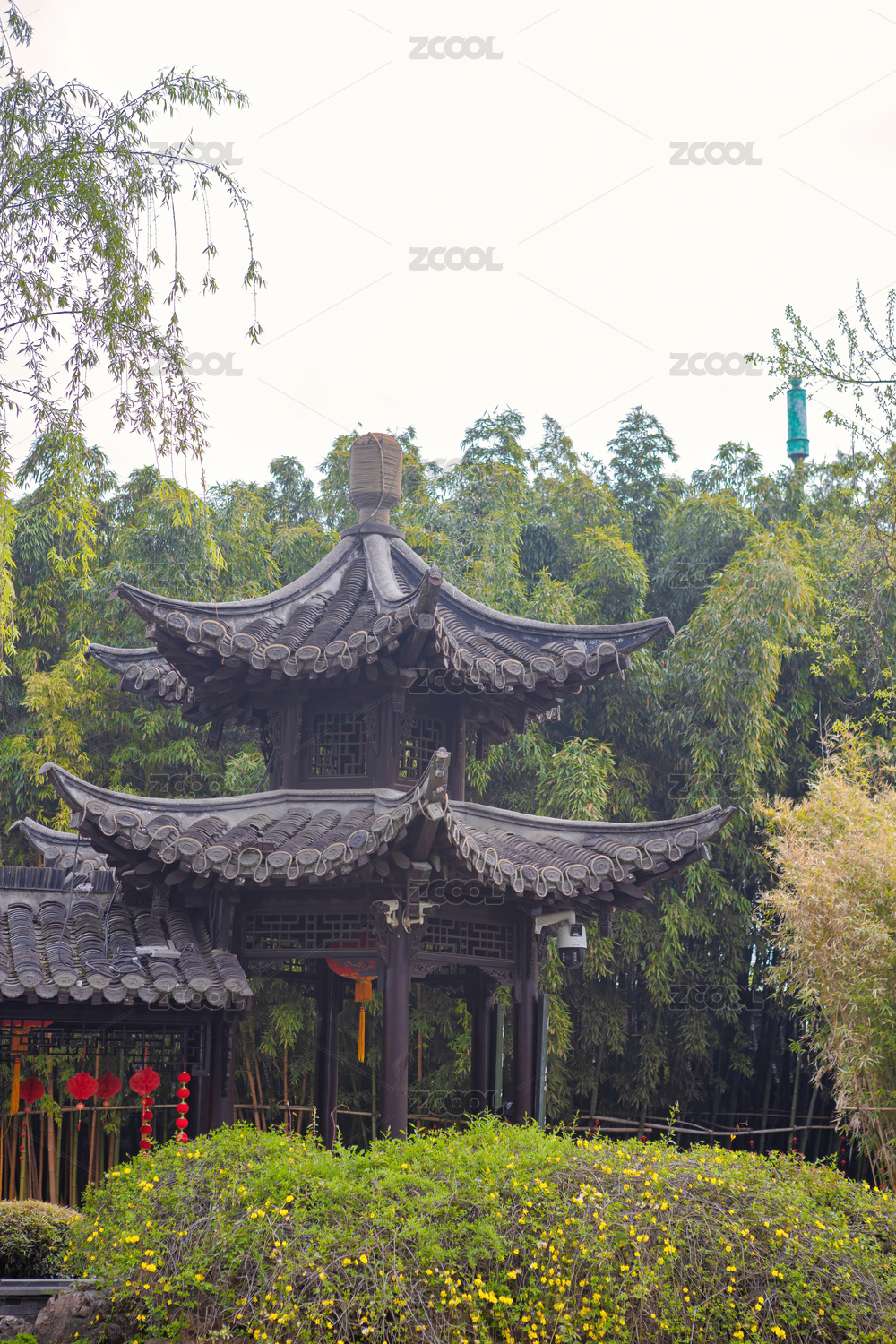 寺庙中的中国传统样式阁楼建筑