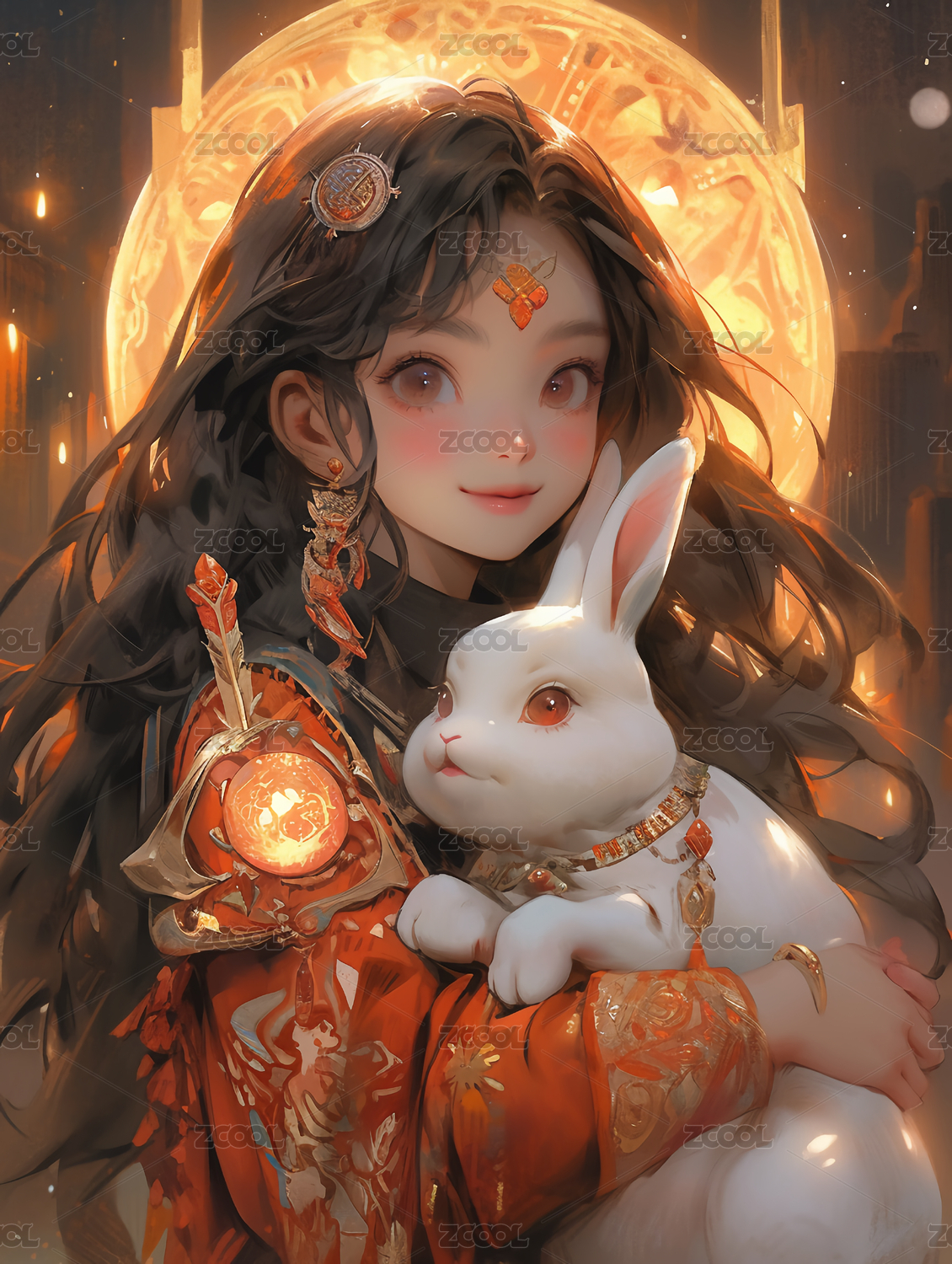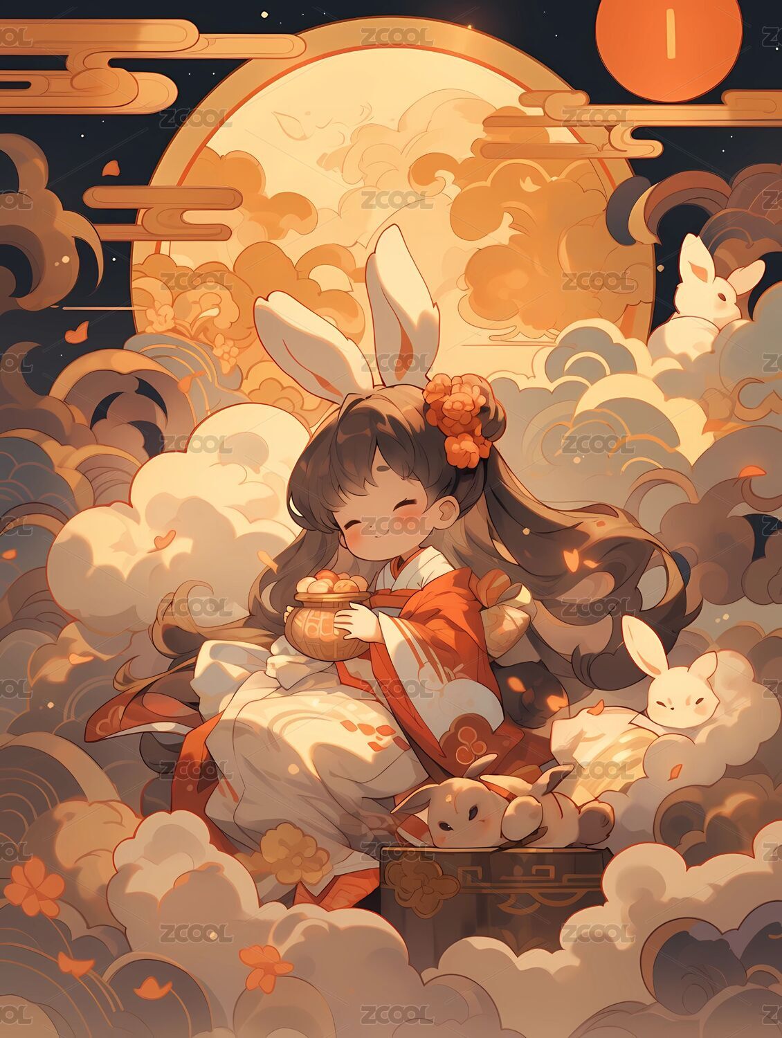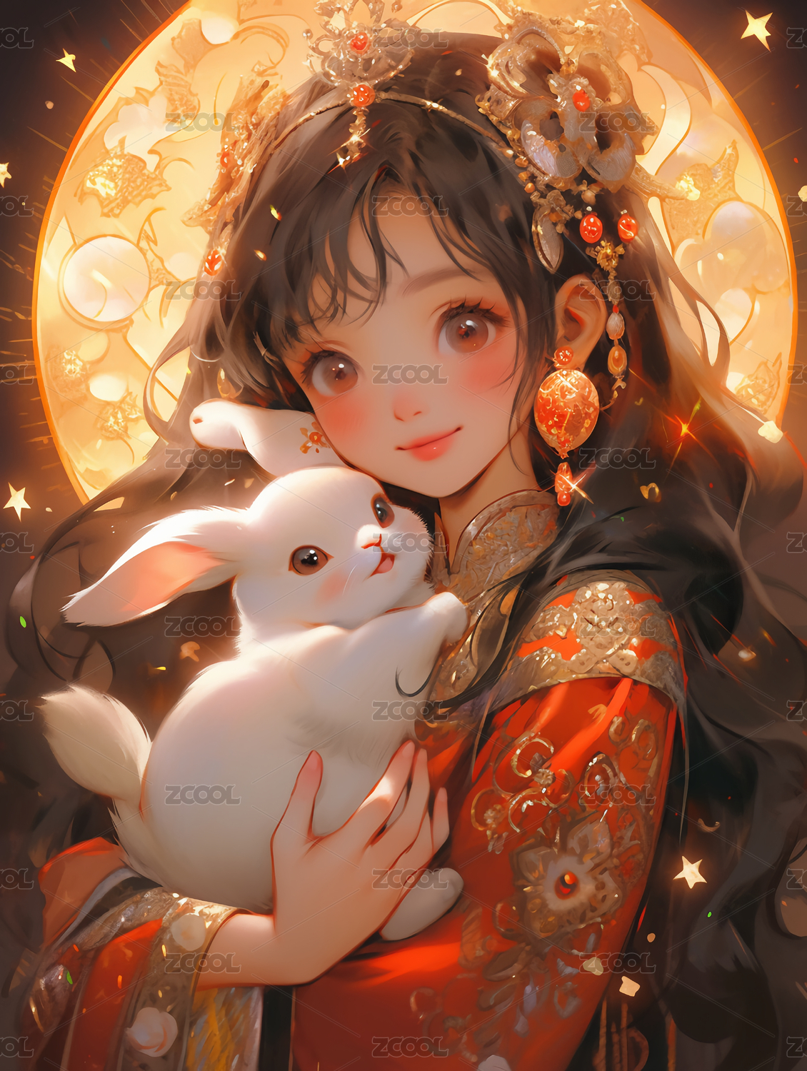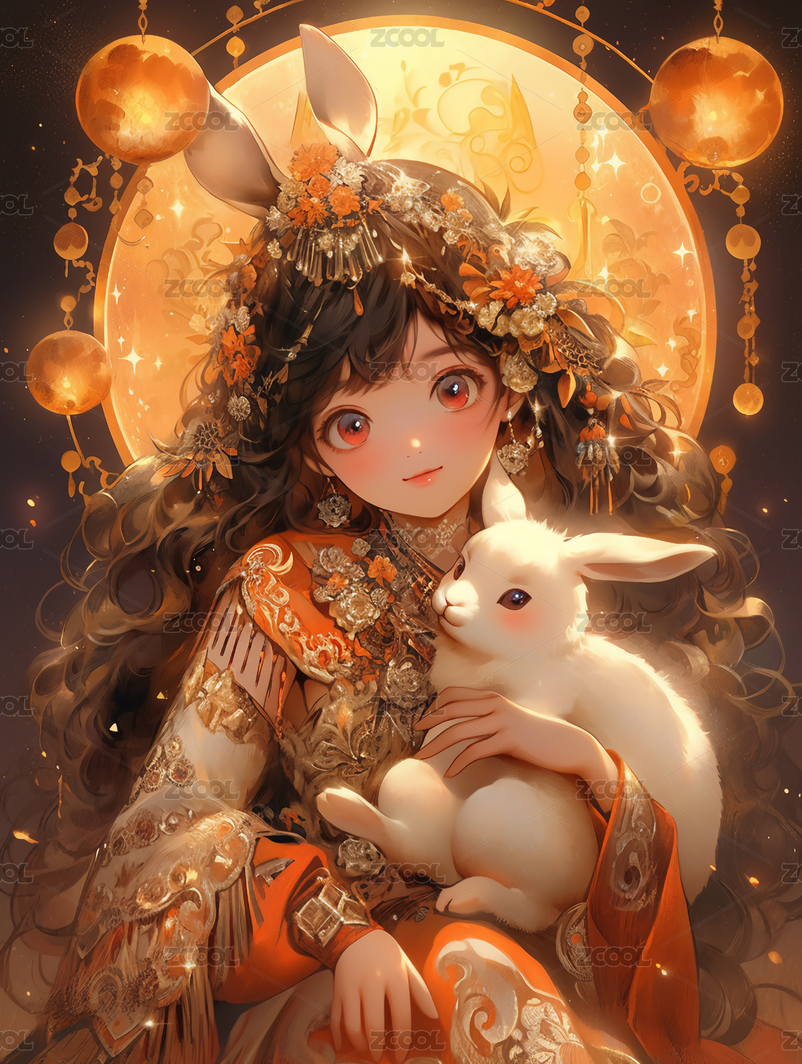 AIGC202403,佳节,立秋,秋天,节日,玉兔,嫦娥,月亮,仙女,神话