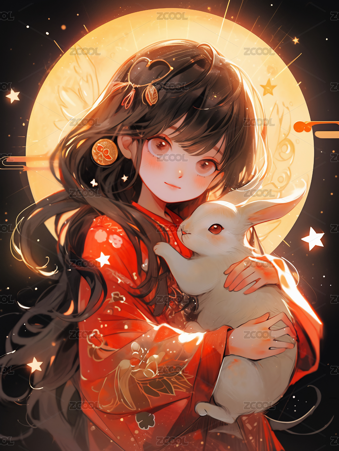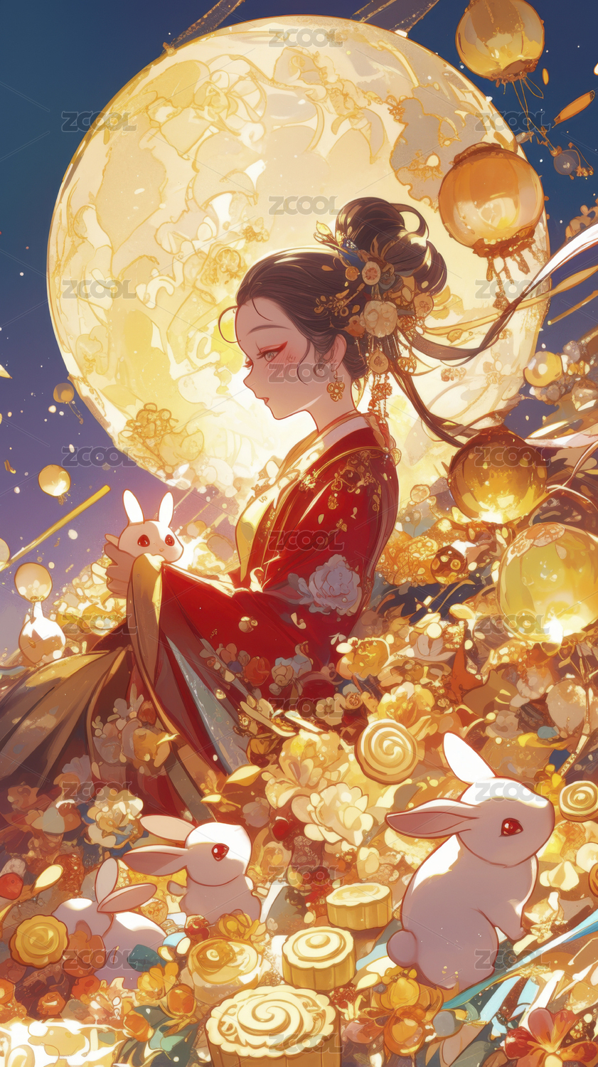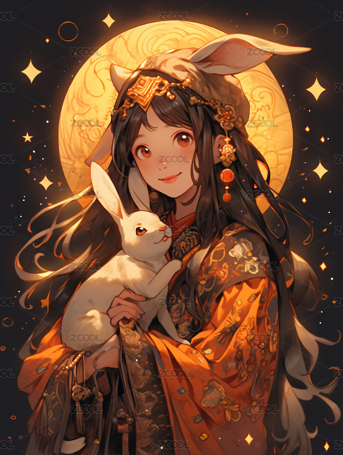 AIGC202403,佳节,立秋,秋天,节日,玉兔,嫦娥,月亮,仙女,神话