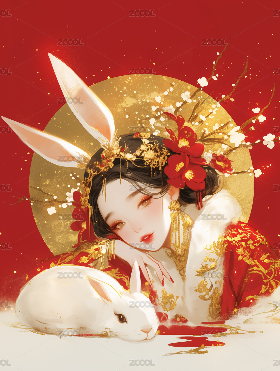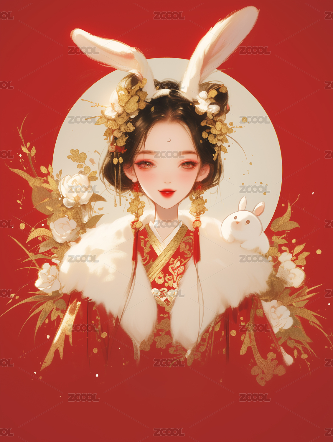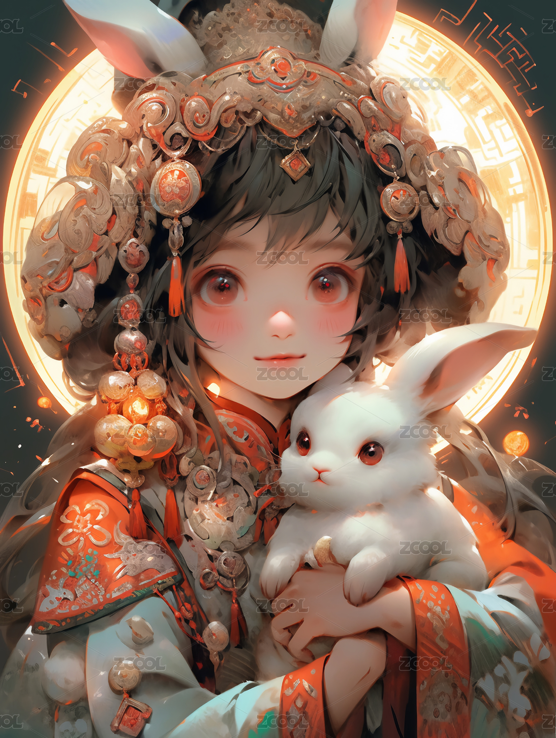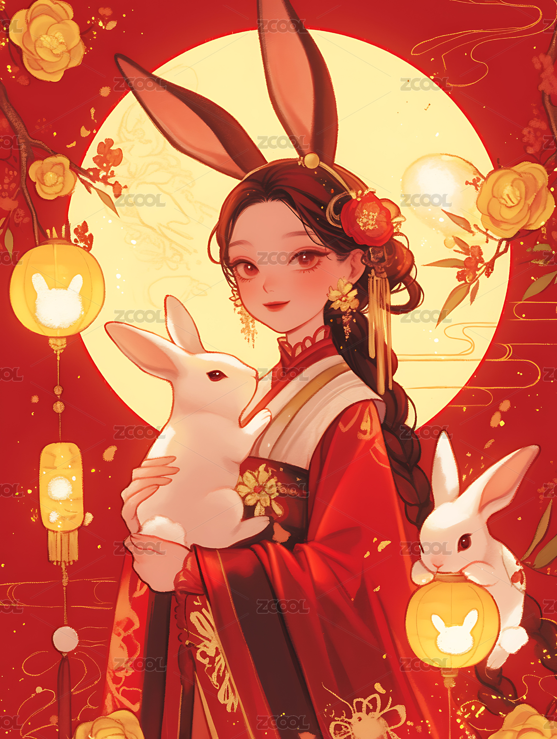AIGC202403,佳节,立秋,秋天,节日,玉兔,嫦娥,月亮,仙女,神话
