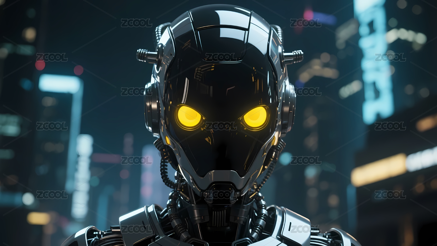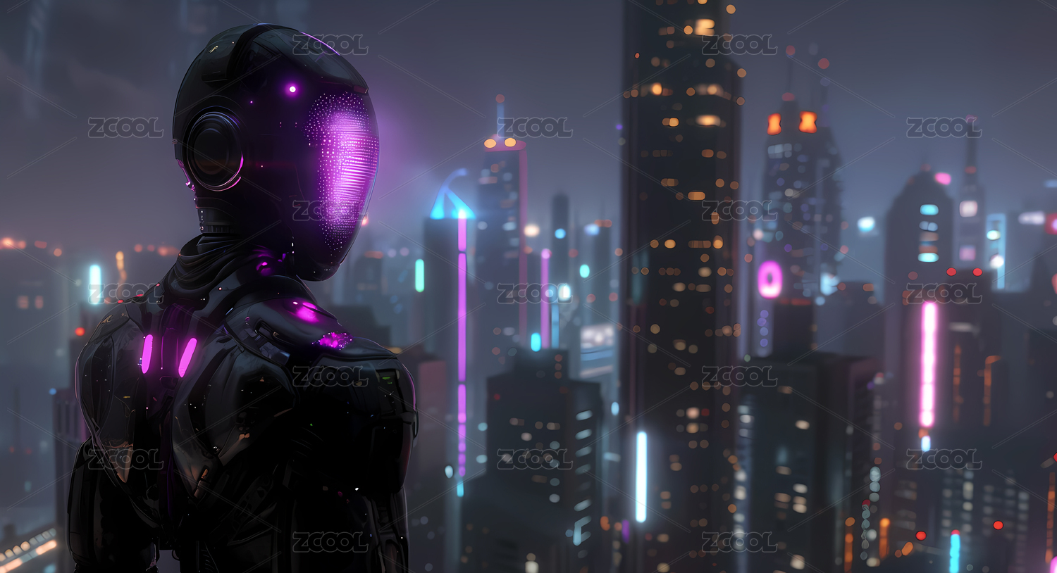 黑色机器人城市夜景