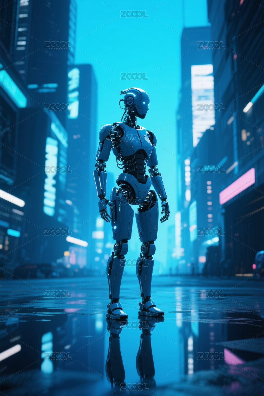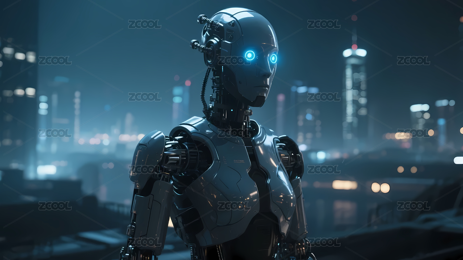 未来科技城市人工智能机器人插图